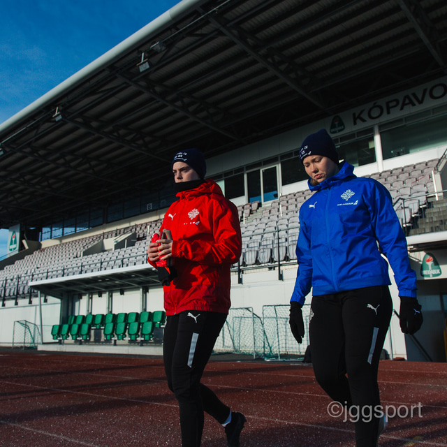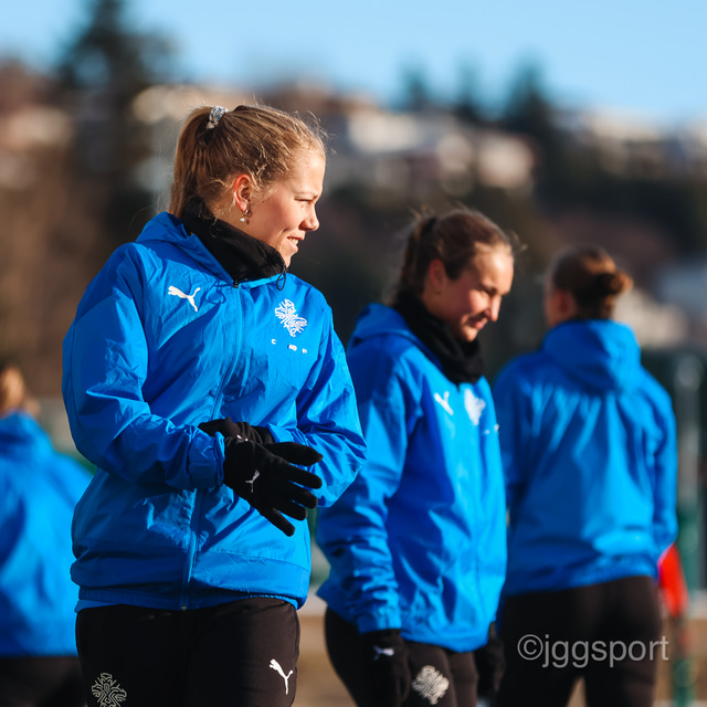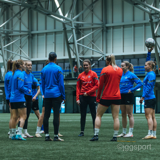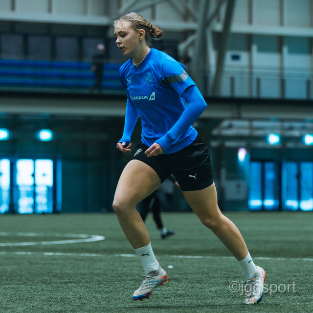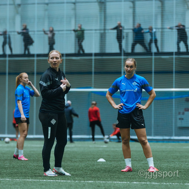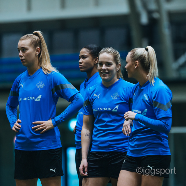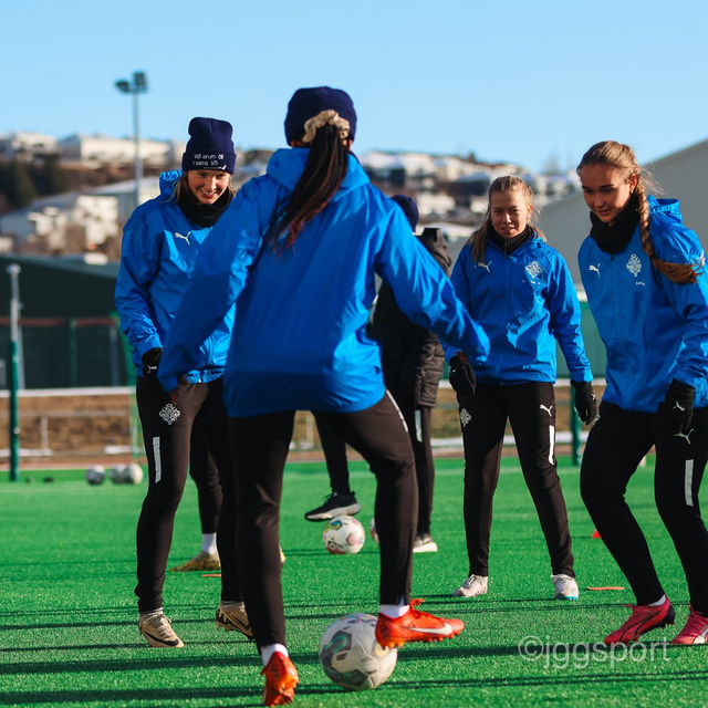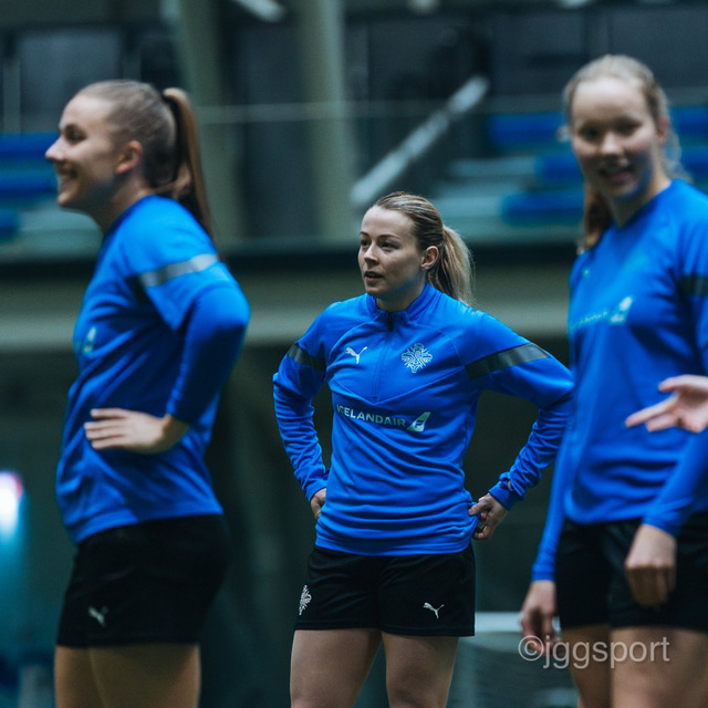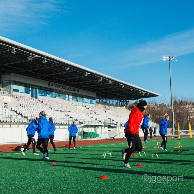 Liðið æfði í Kópavoginum í fyrradag og í gærmorgun í Miðgarði í Garðabæ. Jónína Guðbjörg Guðbjartsdóttir mætti á báðar æfingarnar og tók þessar myndir.