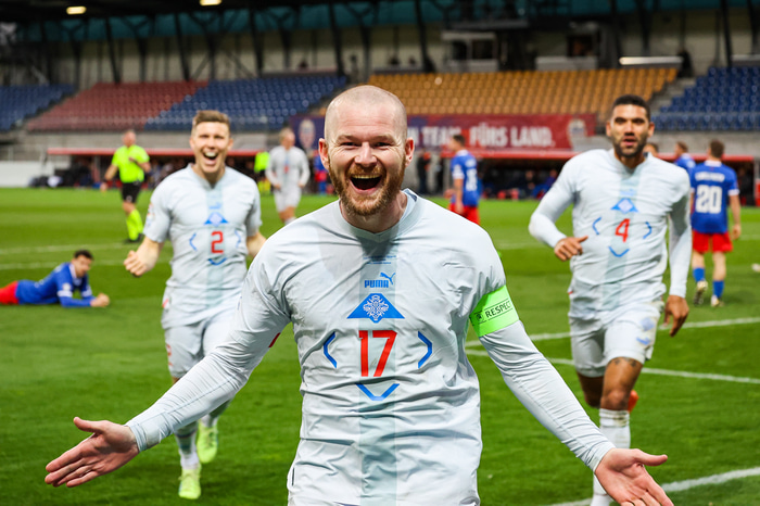 Aron Einar skoraði þrennu gegn Liechtenstein og er sá elsti til að gera þrennu fyrir A-landslið karla