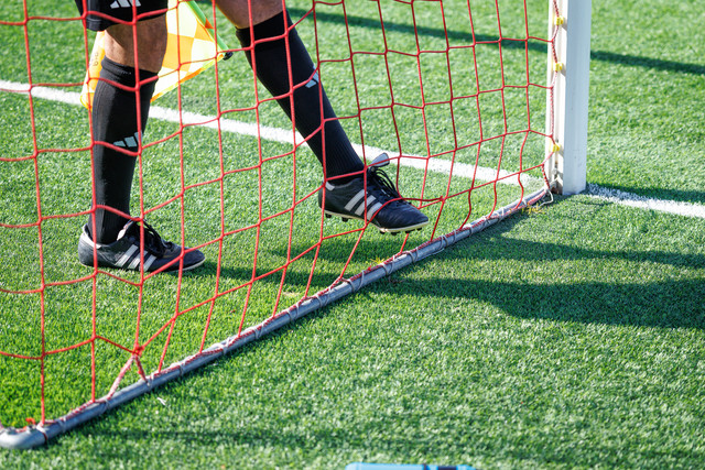 En þegar kom að því að hefja leik var ekki enn búið að laga markið svo leikurinn tafðist um einhverjar mínútur.