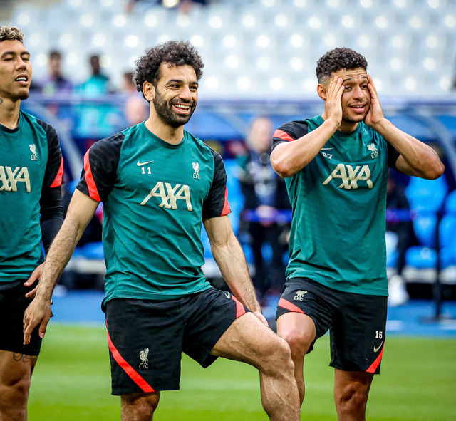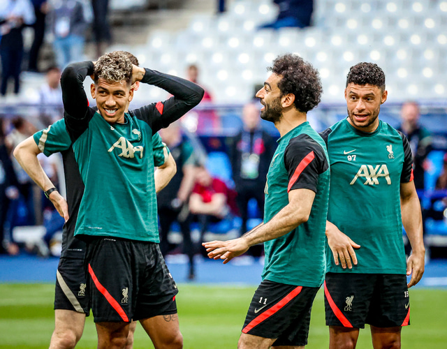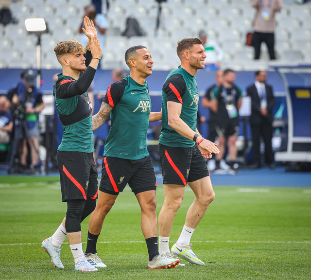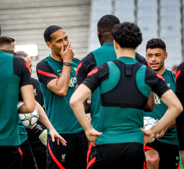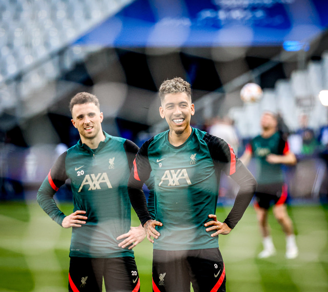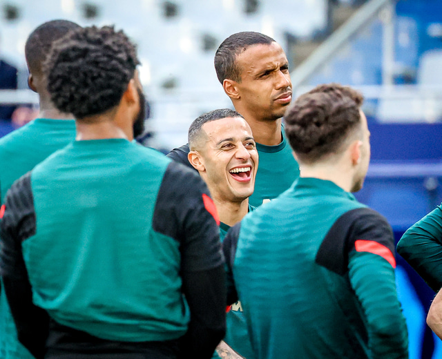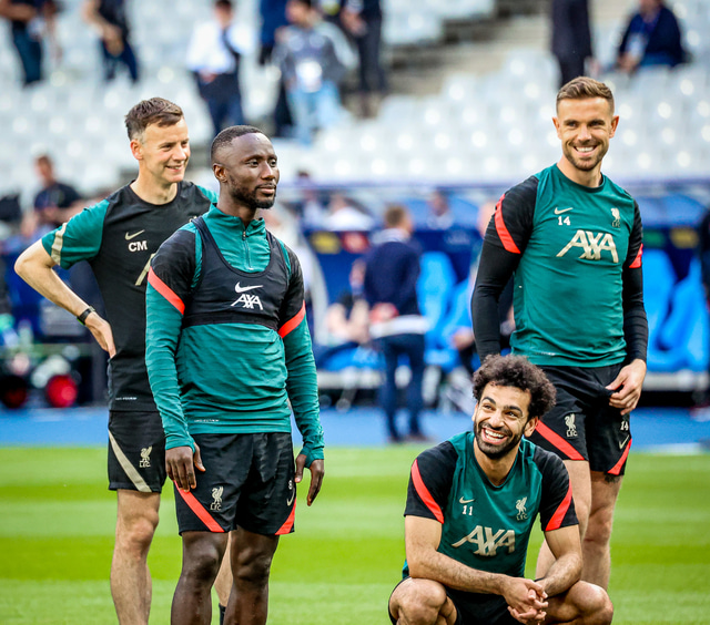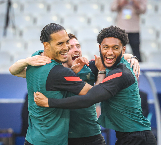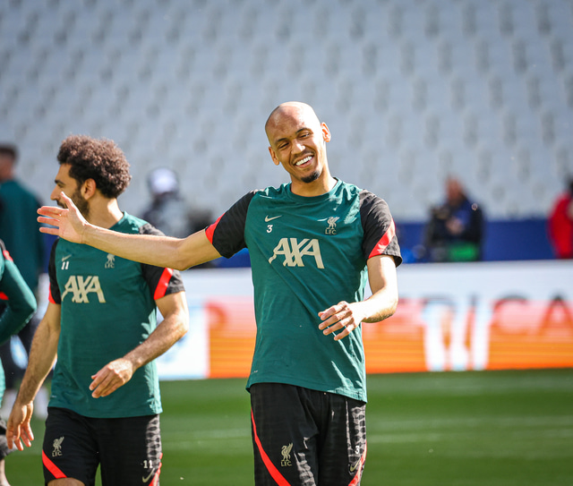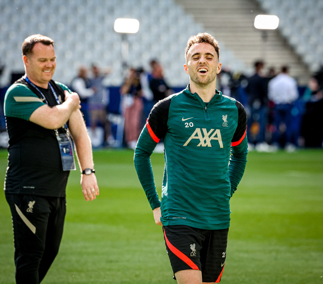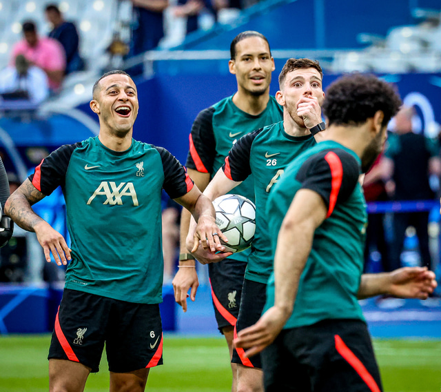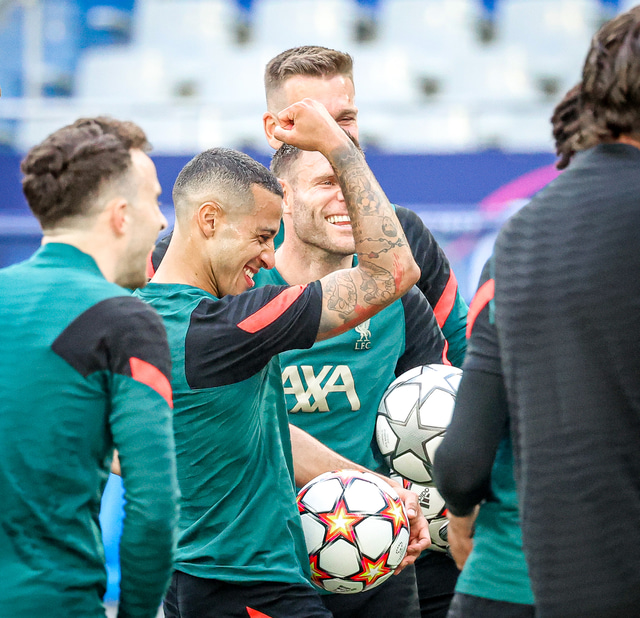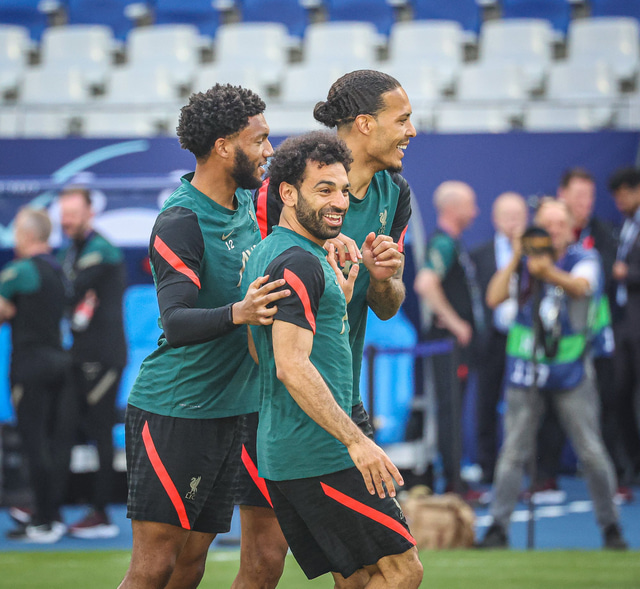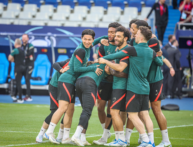 Það var heldur betur létt yfir Liverpool liðinu þegar þeir æfðu á Stade de France í París seinnipartinn í dag.