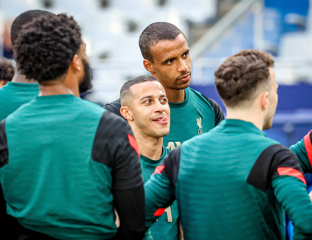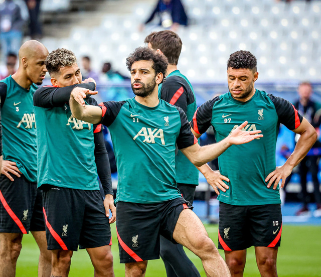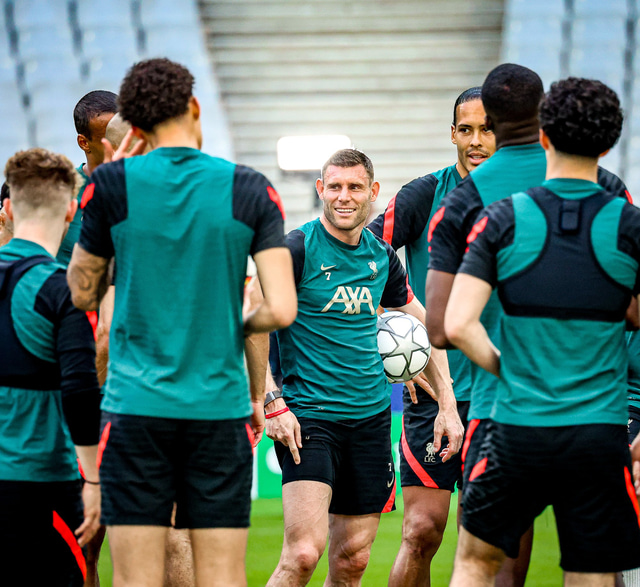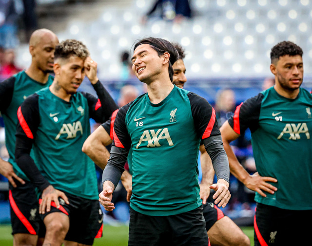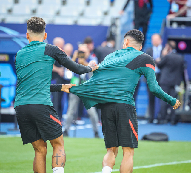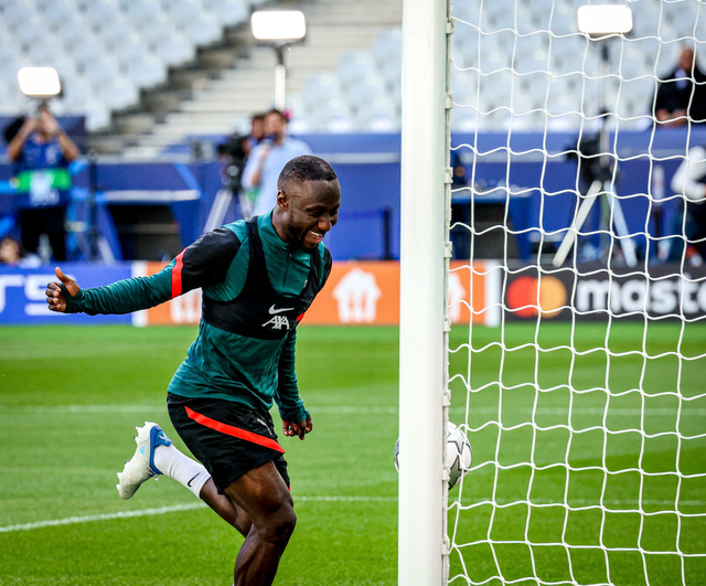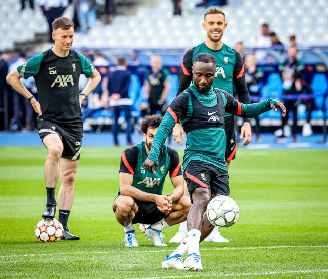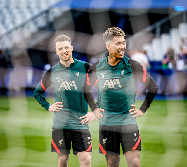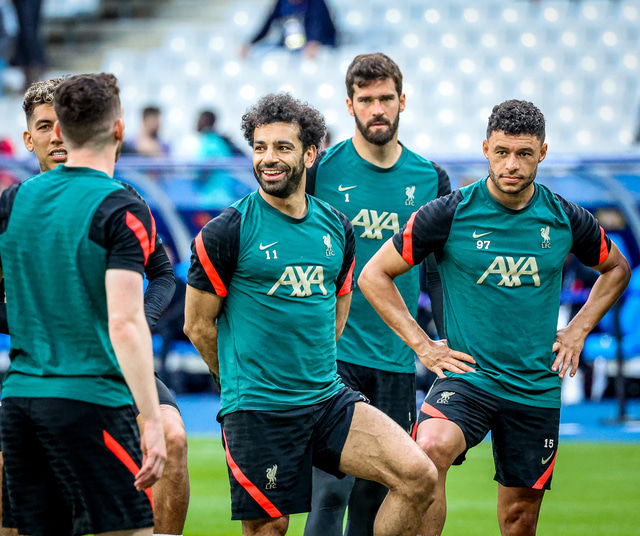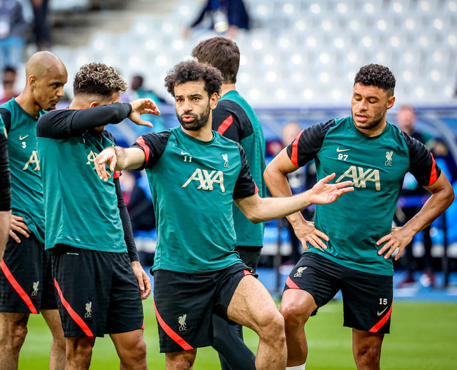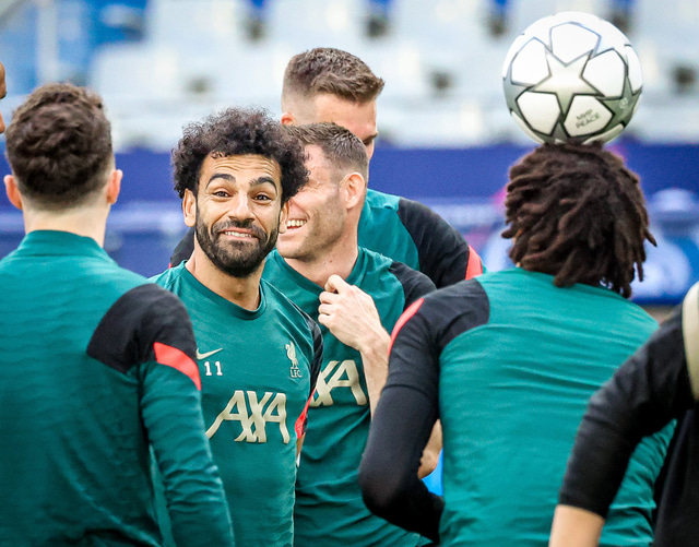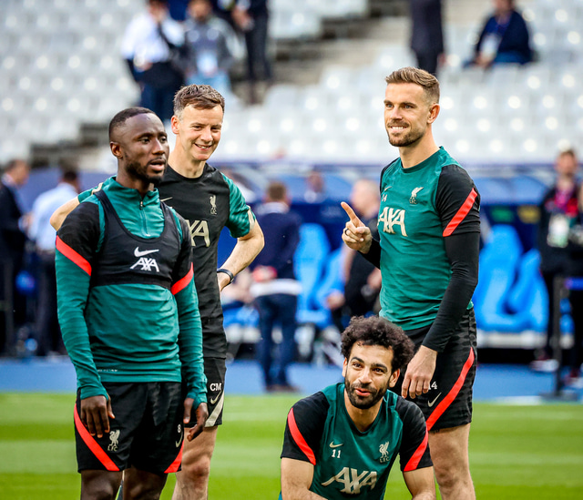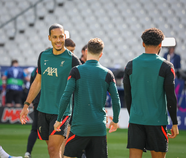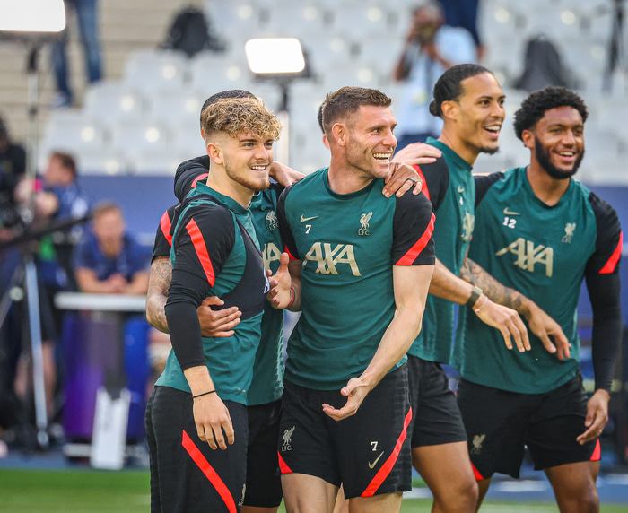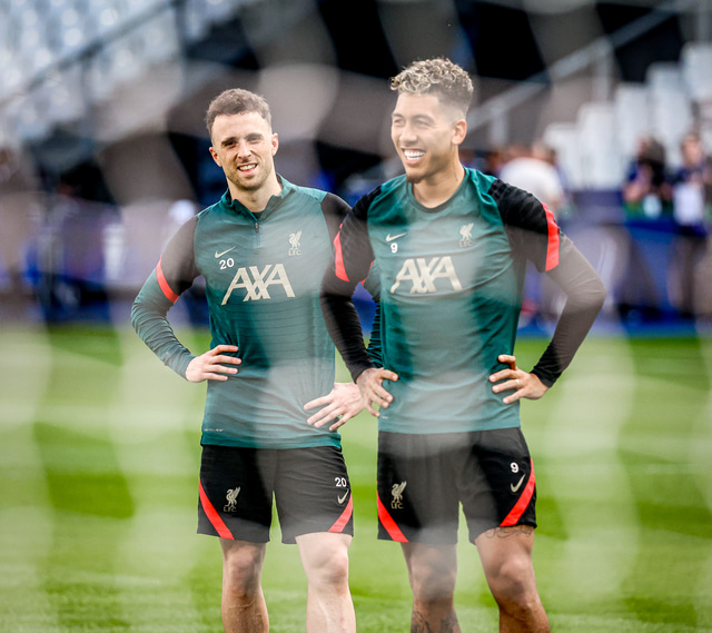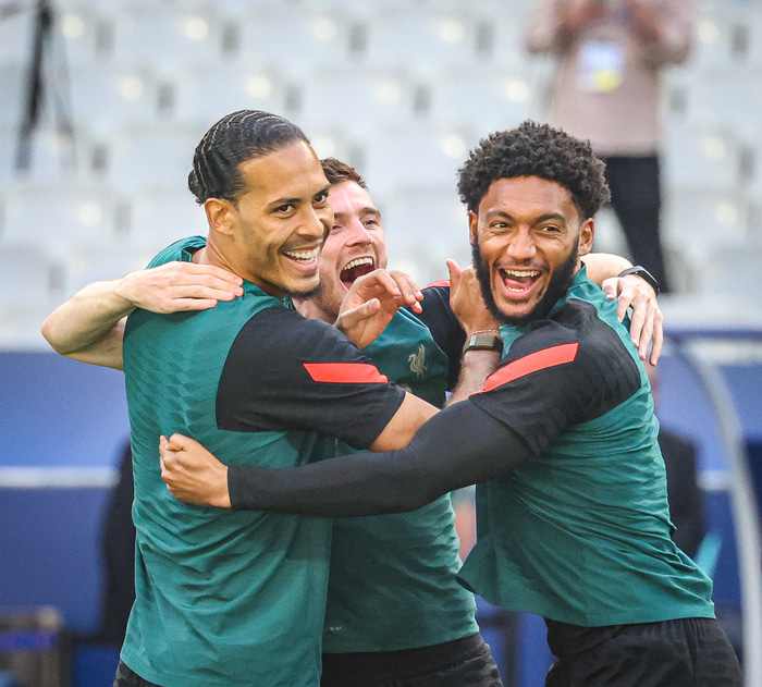 Það var heldur betur létt yfir Liverpool liðinu þegar þeir æfðu á Stade de France í París seinnipartinn í dag.