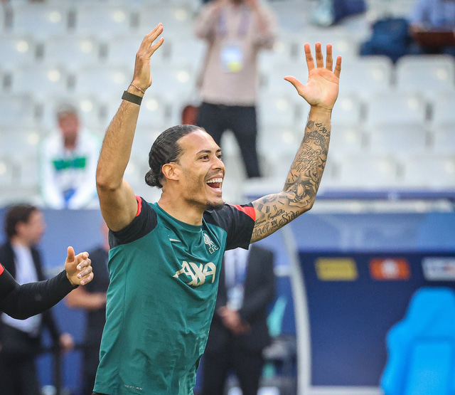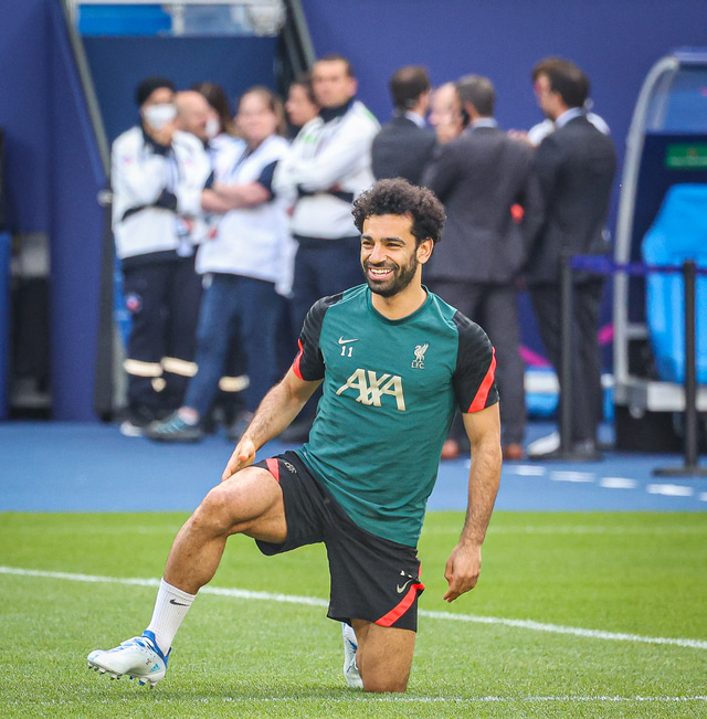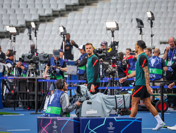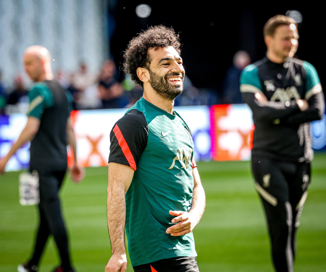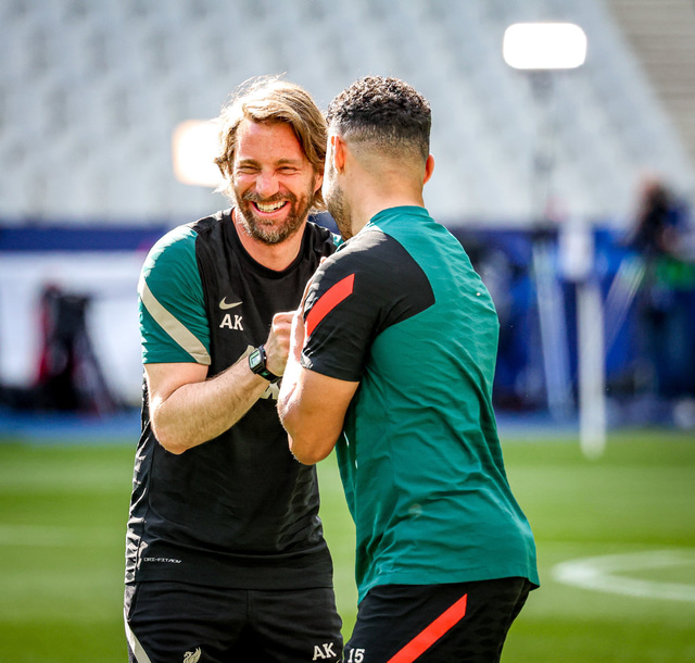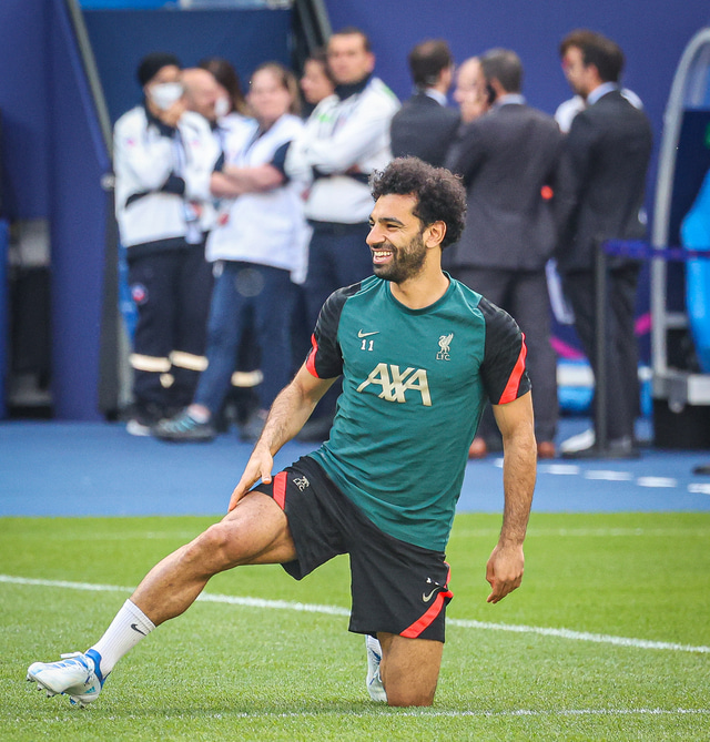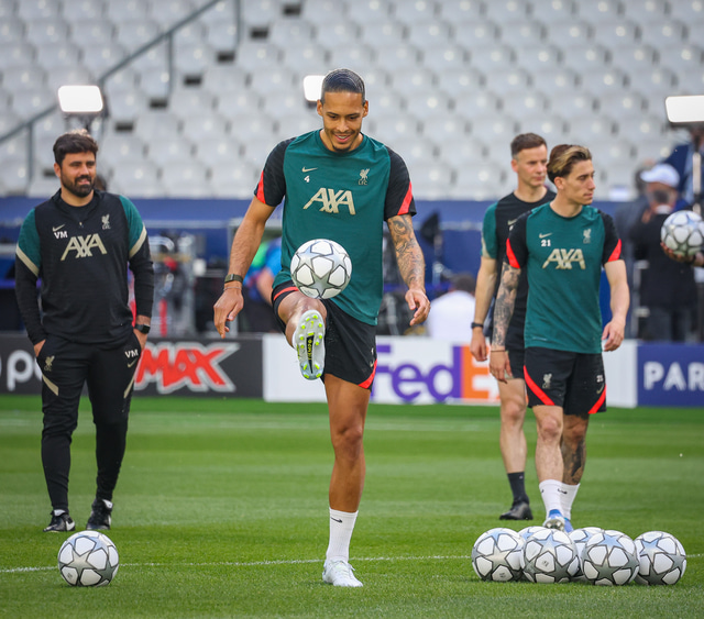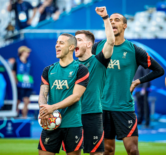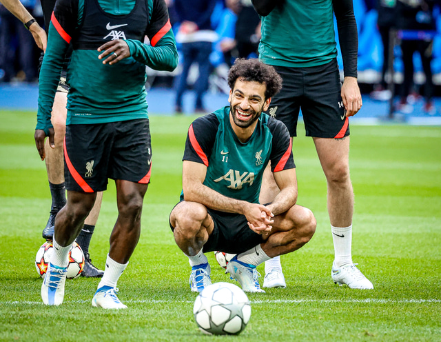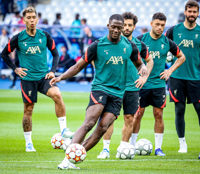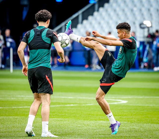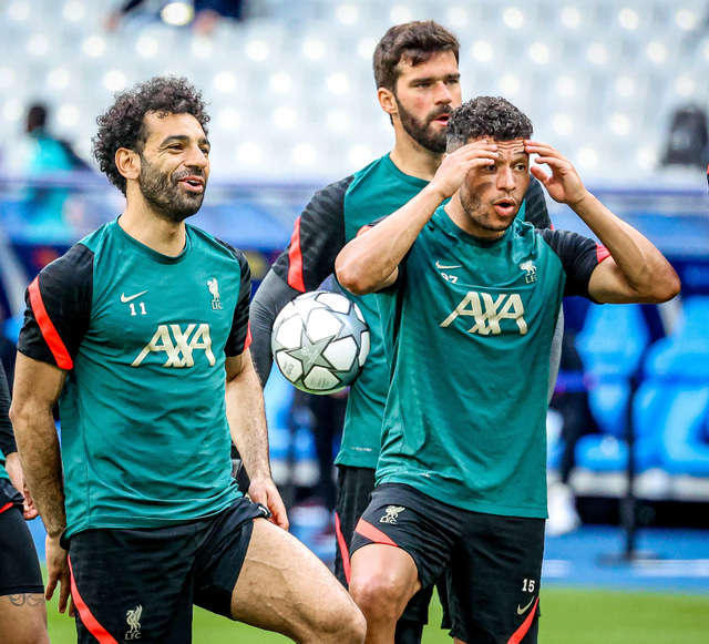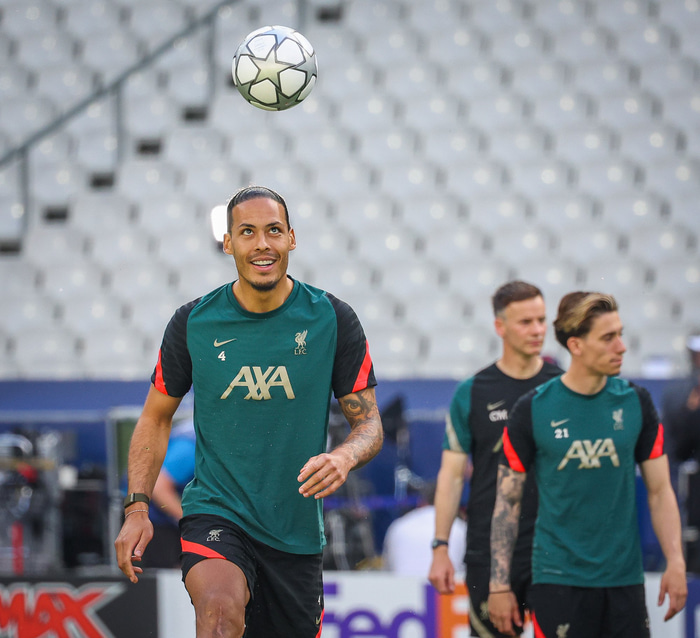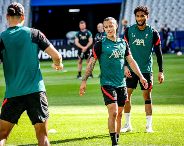 Það var heldur betur létt yfir Liverpool liðinu þegar þeir æfðu á Stade de France í París seinnipartinn í dag.