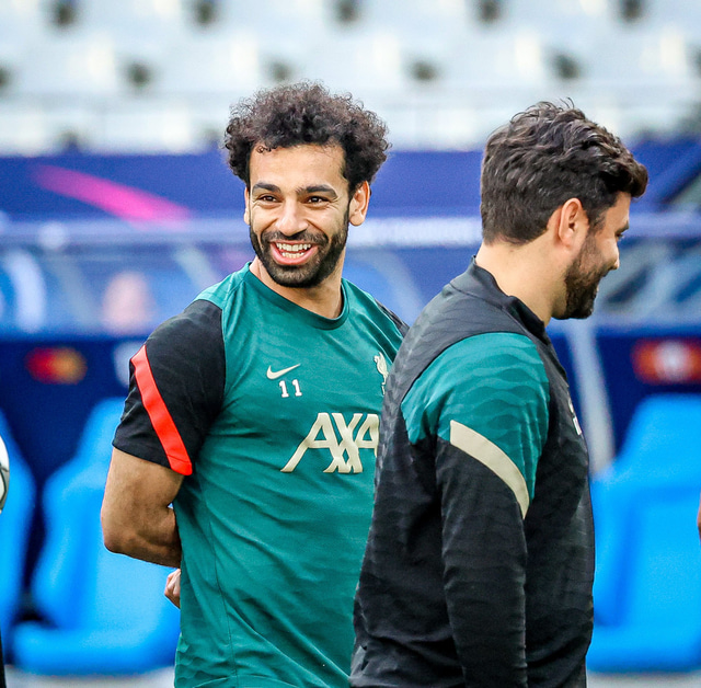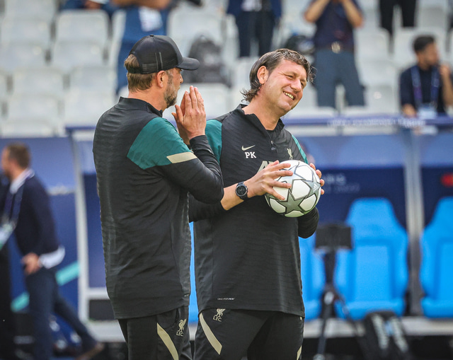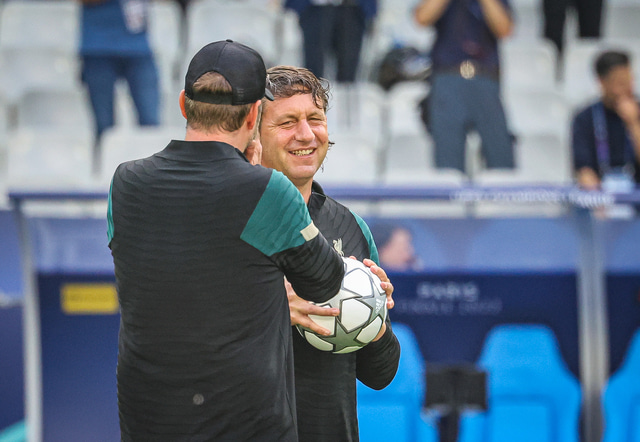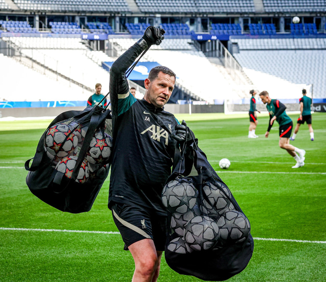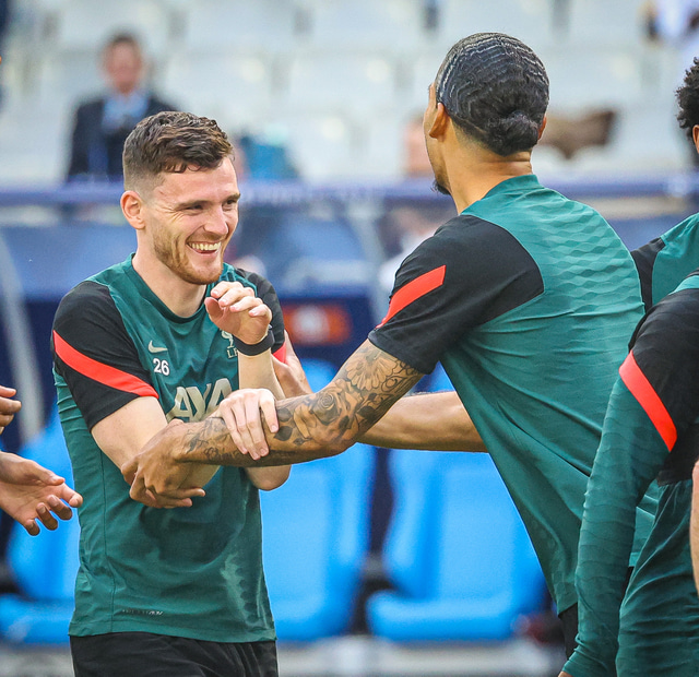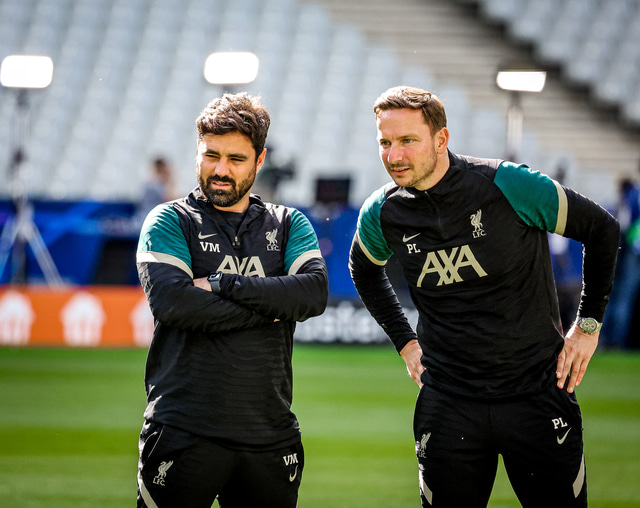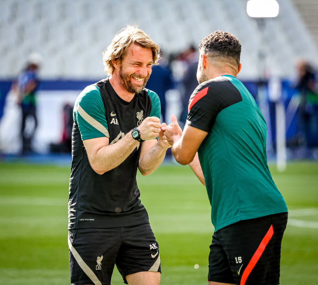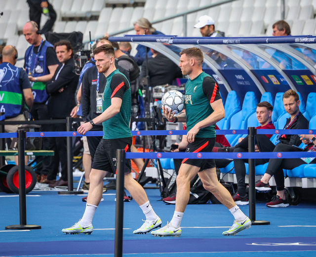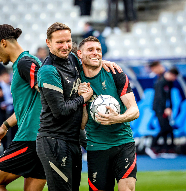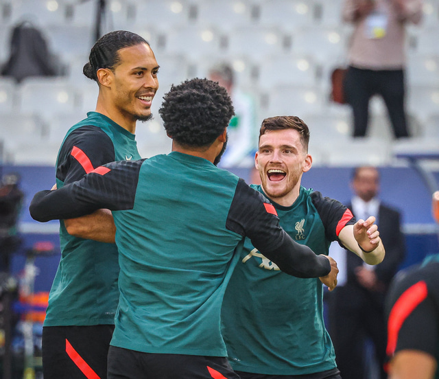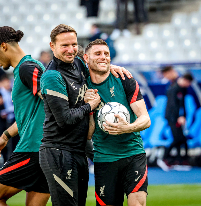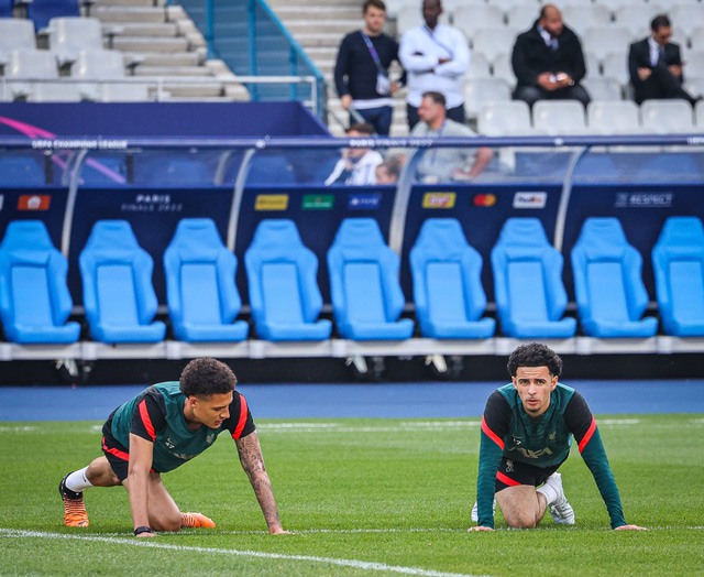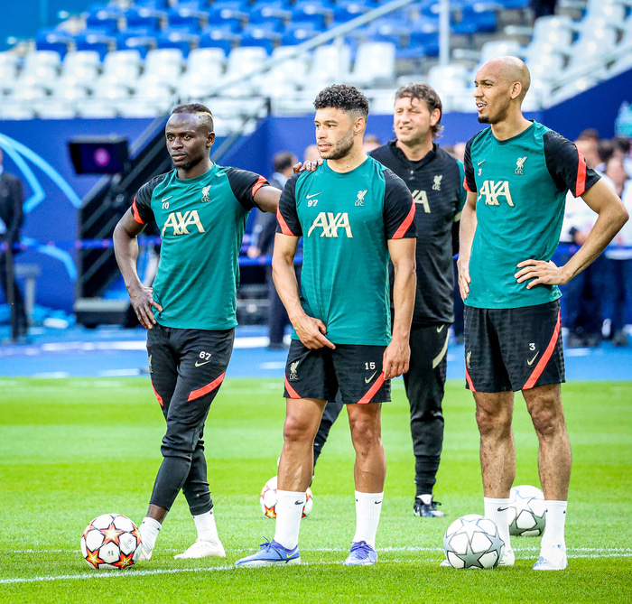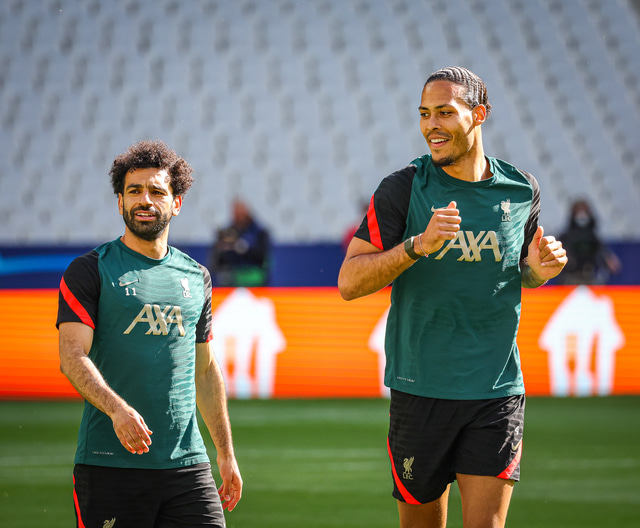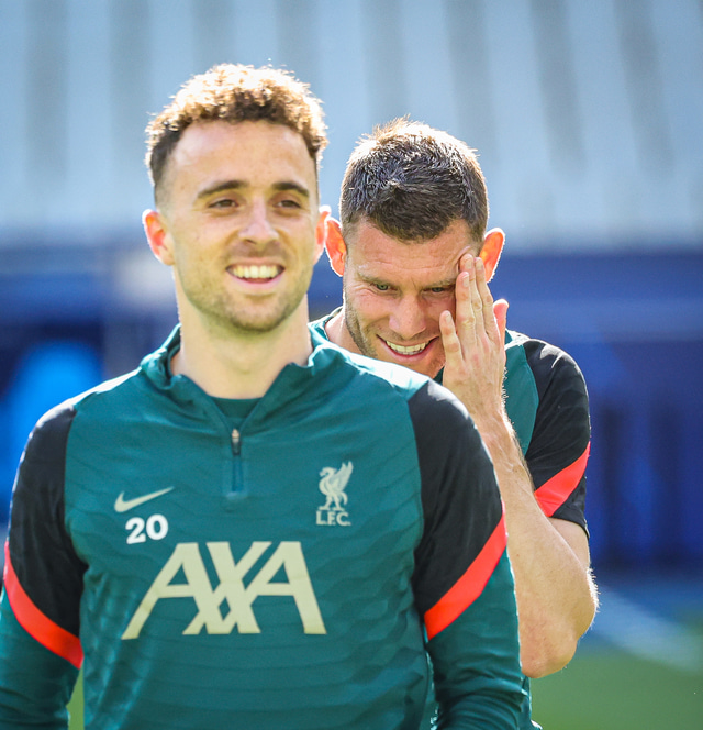 Það var heldur betur létt yfir Liverpool liðinu þegar þeir æfðu á Stade de France í París seinnipartinn í dag.