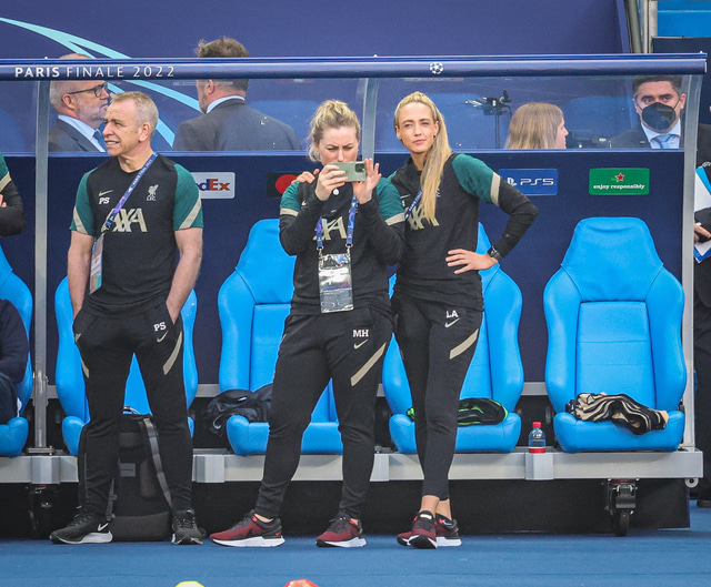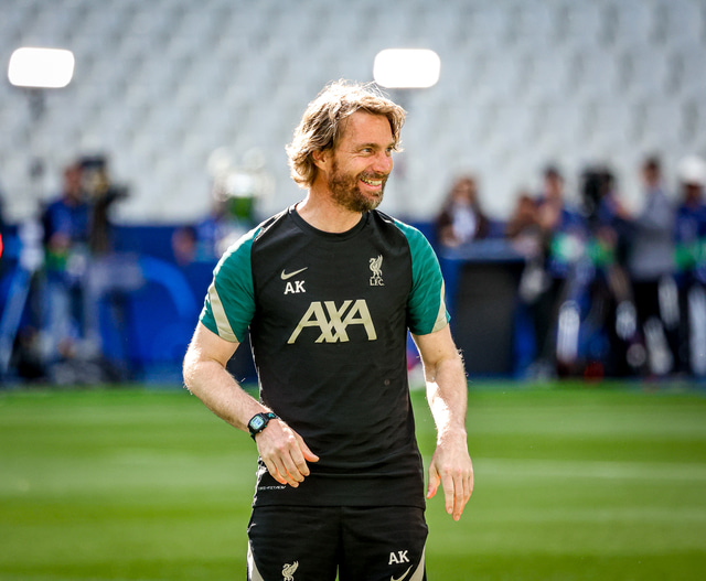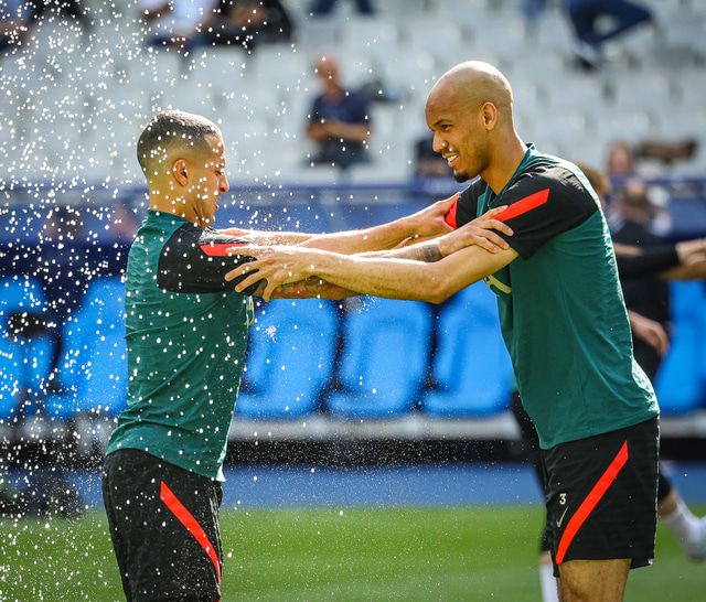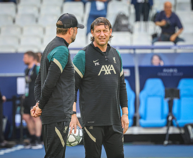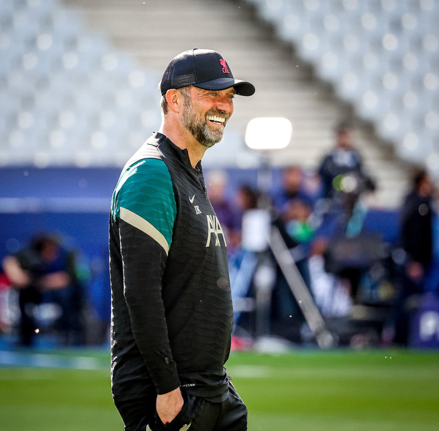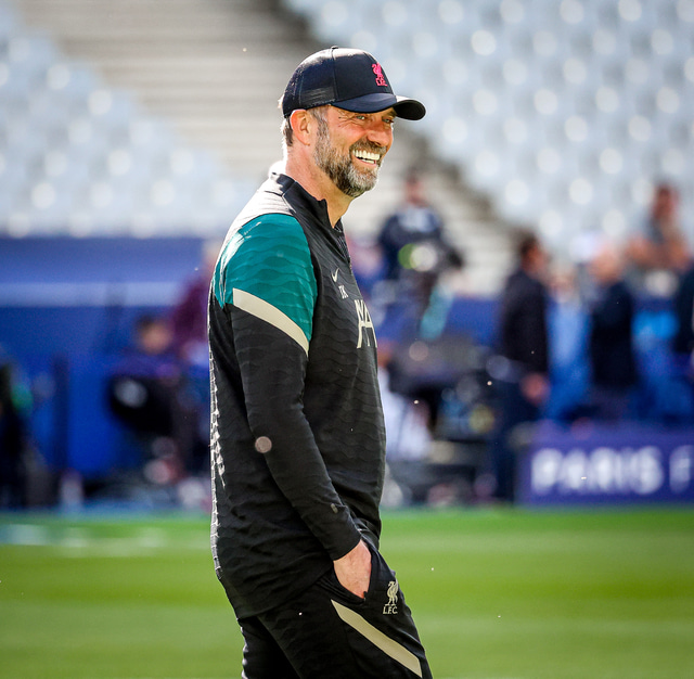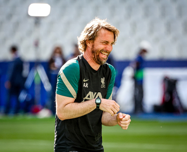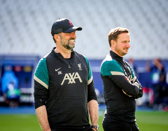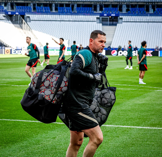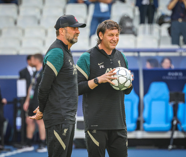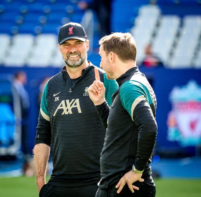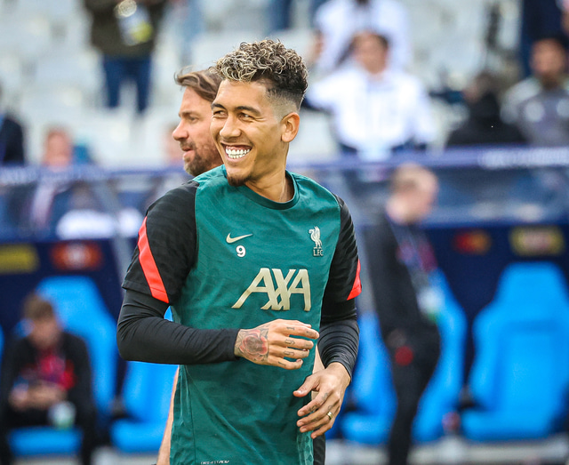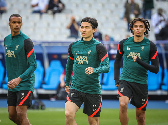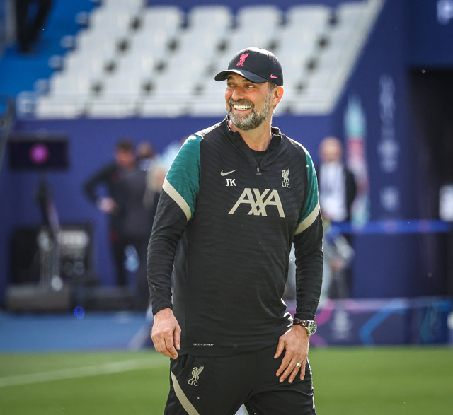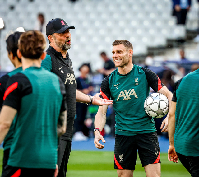 Það var heldur betur létt yfir Liverpool liðinu þegar þeir æfðu á Stade de France í París seinnipartinn í dag.