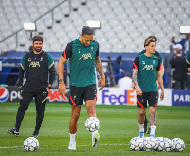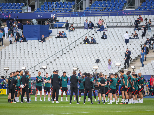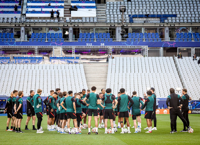 Liverpool mætir Real Madrid í úrslitaleik Meistaradeildar Evrópu klukkan 19:00 á morgun og hefð er fyrir því að liðin fái eina æfingu á keppnisvellinum.