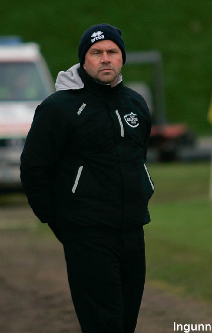 Selfyssingar skoruðu annað mark sitt eftir að einn þeirra tók boltann með hönd í vítateig KV en ekkert var dæmt, Gunnar var ekkert mikið að tjá sig um það.