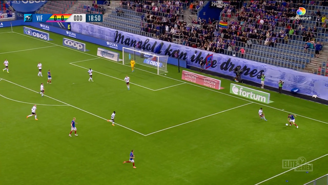 Stuðningsmenn Vålerenga, sem er með heimavöll í Osló, sýndu hreyfingu samkynhneigðra stuðning eftir atvikið með borða og blysum þegar Odd kíkti í heimsókn í gær.