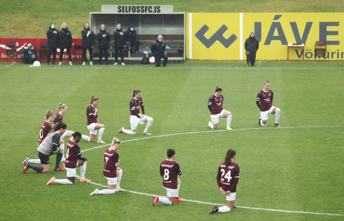 Frumkvæðið átti Tiffany McCarty, leikmaður Selfoss, sem segir þetta, í samtali við sunnlenska.is hafa verið tilfinningaþrungna stund á Selfossvelli. Leikmenn, dómarar og þjálfarar krupu á kné fyrir leikinn og þá var mínútu þögn.