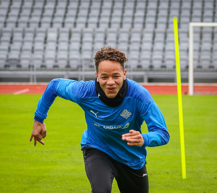 Arnar Þór Viðarsson, þjálfari Íslands, neyddist til að gera taktíska breytingu og tók Jón Dag Þorsteinsson af velli og setti Daníel Leó Grétarsson inn í vörnina.