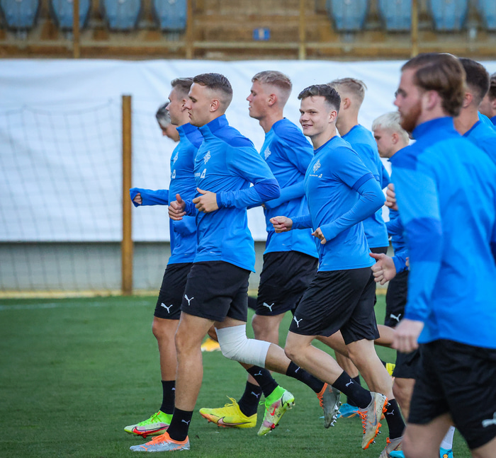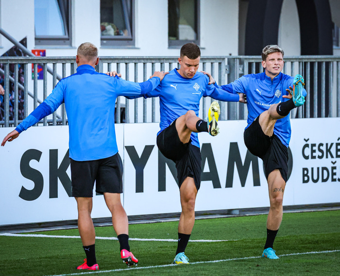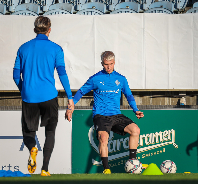 U21 karla æfði í Ceské Budejovice í Tékklandi í gær en framundan er leikur við heimamenn í umspili um sæti á EM. Leikurinn hefst 16:00 og er í beinni textalýsingu á Fótbolta.net. Hér að neðan má sjá myndir af æfingunni.