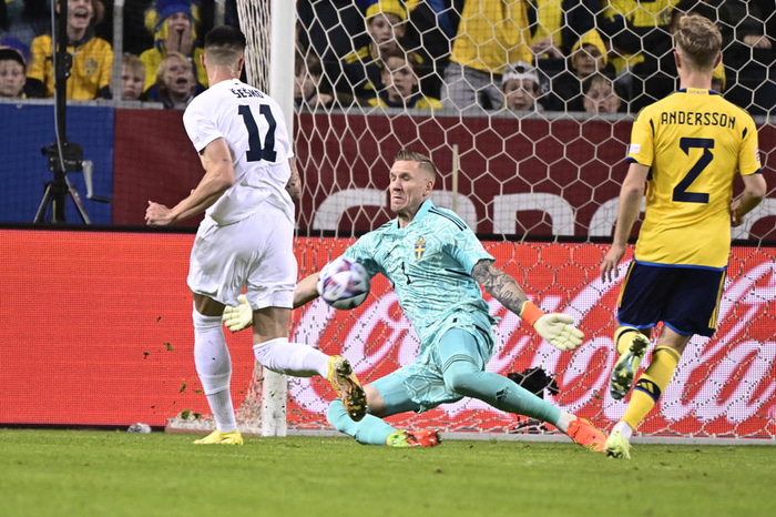 Slóvenski framherjinn Benjamin Sesko skoraði fallegasta mark kvöldsins í Þjóðadeildinni í 1-1 jafnteflinu gegn Svíþjóð, en slóvenski lýsandinn hefur eflaust sprengt hljóðhimnur um allan heim í lýsingu sinni á markinu.