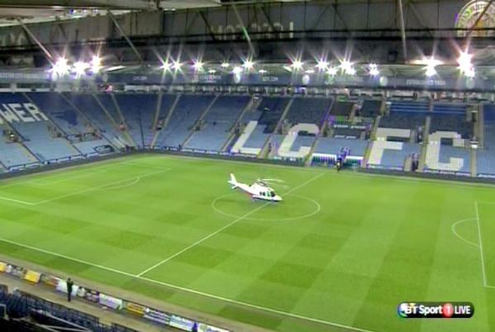 Þyrla Vichai Srivaddhanaprabha, eiganda Leicester City hrapaði nú rétt í þessu fyrir utan heimavöll liðsins, King Power leikvanginn eftir leikinn gegn West Ham. Allt er í ljósum logum.
