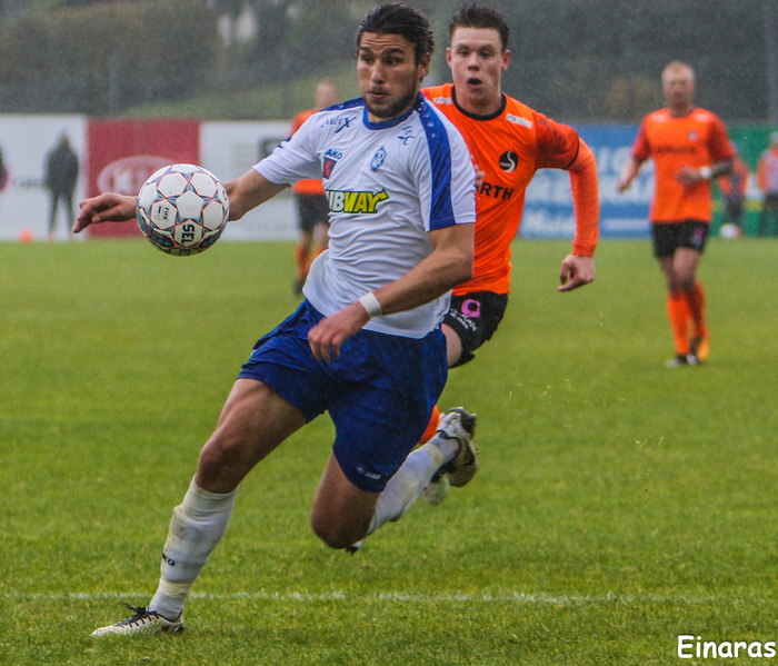 Danijel skoraði mark sitthvoru megin við hálfleikinn og minnkaði Óskar Borgþórsson muninn fyrir heimamenn á 79. mínútu.