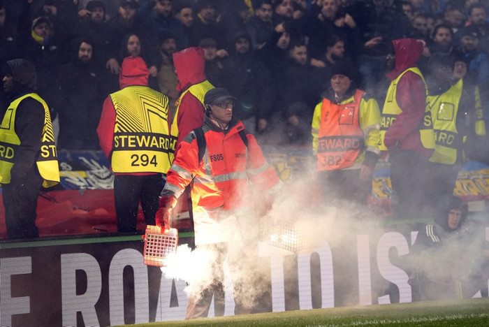 Stuðningsmenn Fenerbahce hafa verið óhressir eftir stórt tap á heimavelli í fyrri leik liðanna, þar sem Forest vann 0-3 í Tyrklandi. Fenerbahce komst þó í tveggja marka forystu í seinni leiknum í fyrradag en náði ekki að jafna heildarstöðuna og var slegið úr leik.