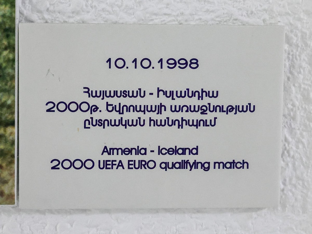 Hægt er að sjá myndir frá vellinum hér að neðan en á gangi á vellinum má sjá myndir úr landsleikjum Armeníu í gegnum tíðina. Á einni myndinni má sjá Sigurð Jónsson tækla leikmann Armeníu í landsleik þjóðanna árið 1998. Það var fyrsta viðureign Armeníu og Íslands en sá leikur endaði 0-0. Hinir tveir leikirnir á milli Armeníu og Íslands hafa báðir endað 2-0 fyrir Ísland.