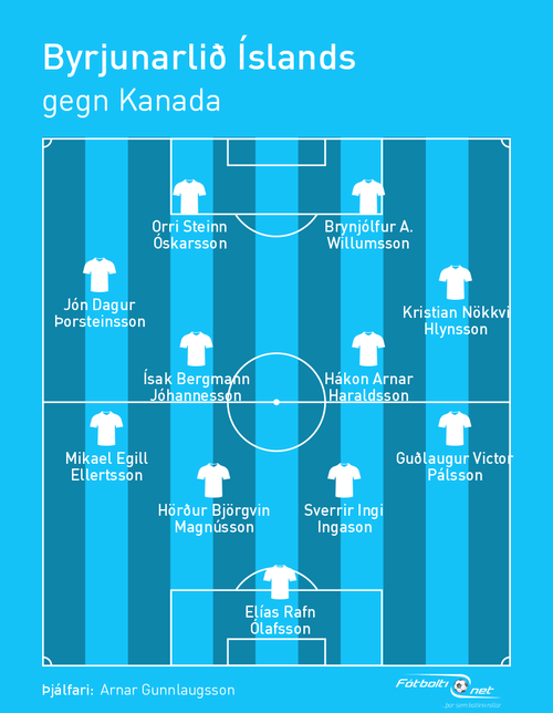 Íslenska karlalandsliðið spilar vináttulandsleik við Kanada á BMO-leikvanginum í Toronto í Kanada klukkan 17:00 í dag, en Arnar Gunnlaugsson hefur tilkynnt byrjunarlið sitt.