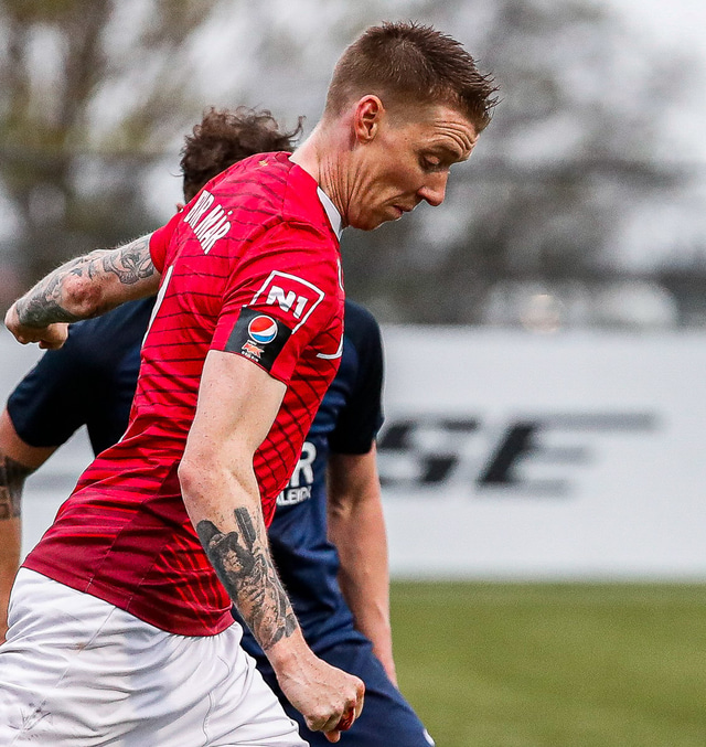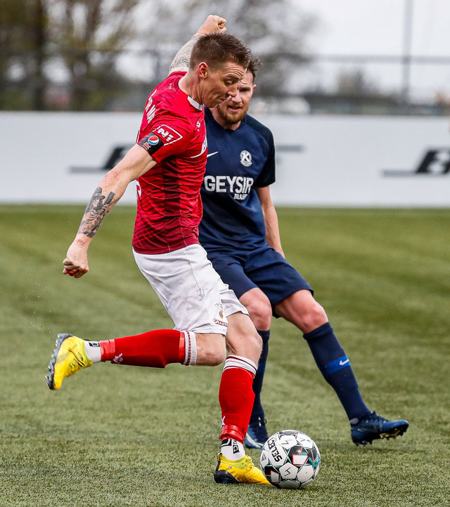 Birkir Már var í eldlínunni með Val í 5-1 sigri gegn Keflavík í æfingaleik sem fram fór á Hlíðarenda í gærkvöldi og þar var myndin tekin.