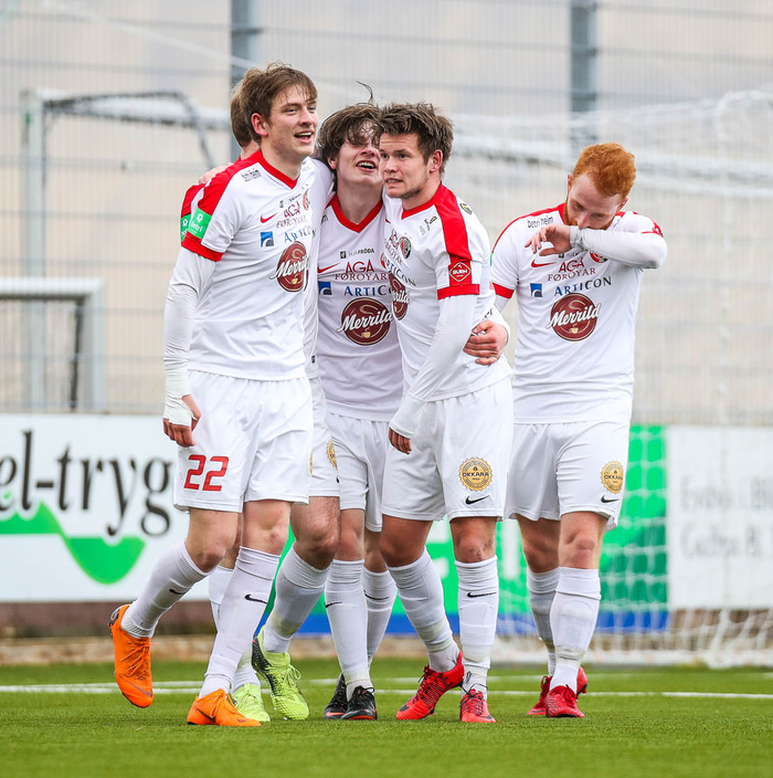 Rene Joensen, fyrrum leikmaður Grindavíkur, skoraði fyrsta mark leiksins og lagði annað markið upp fyrir Mathias Kristensen.