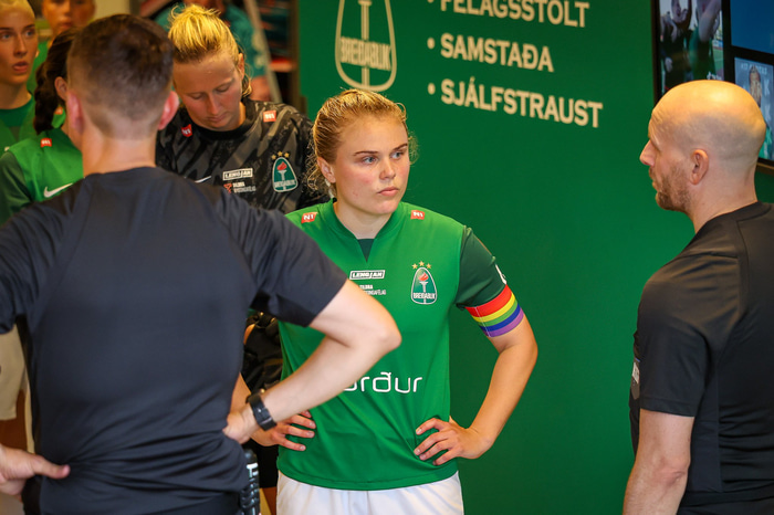 „Mér fannst þetta heilt yfir frábærlega vel spilaður leikur hjá okkur. Við fengum fullt af færum, skoruðum þrjú góð mörk og bara frábært að sigra sterkt lið Þróttar," sagði Agla María eftir leikinn.