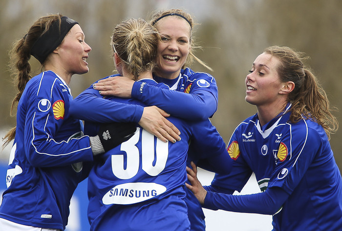 Nánar er rætt við Hörpu í sjónvarpinu hér að ofan en á tímabili heyrðist illa í henni þegar liðið fagnaði beint fyrir aftan hana.