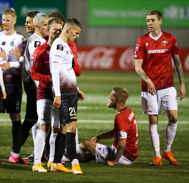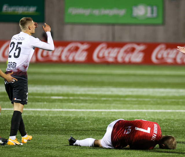 Þá mætti Valsmaðurinn Einar Karl Ingvarsson á svæðið, en hann er bróðir Davíðs. Hann verndaði bróður sinn og fylgdi honum svo í kjölfarið af velli.