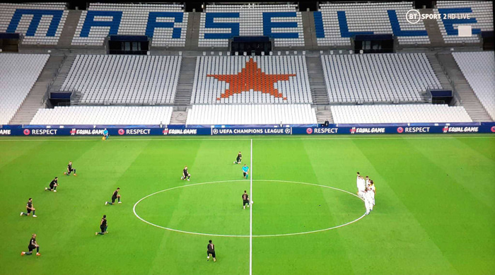 Það vakti athygli fyrir leik Marseille og Manchester City í Meistaradeildinni í gær að ekki allir leikmenn krupu á kné.