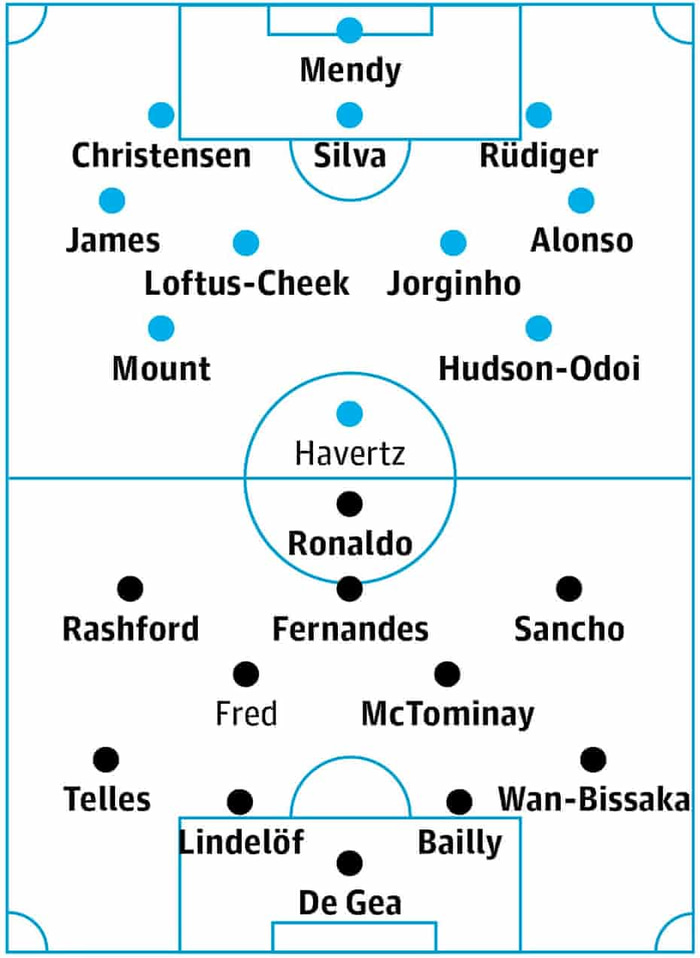Anthony Taylor dæmir stórleikinn á eftir en hér til hliðar má sjá mynd af líklegum byrjunarliðum frá The Guardian.