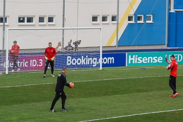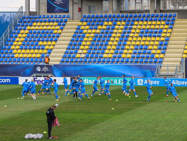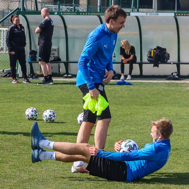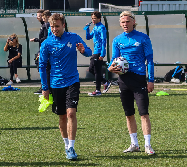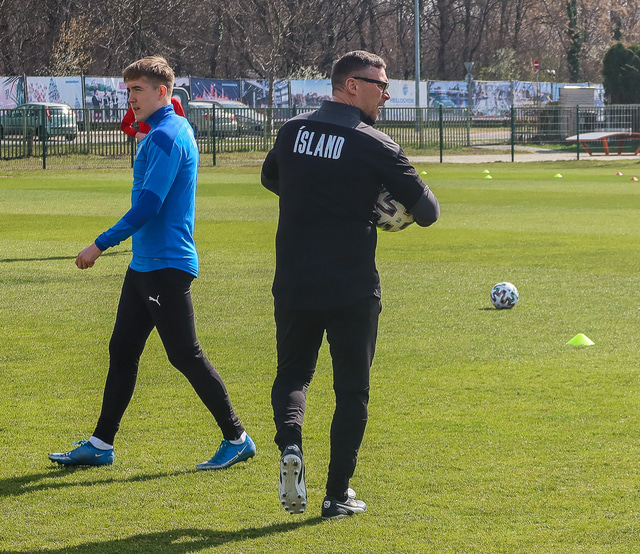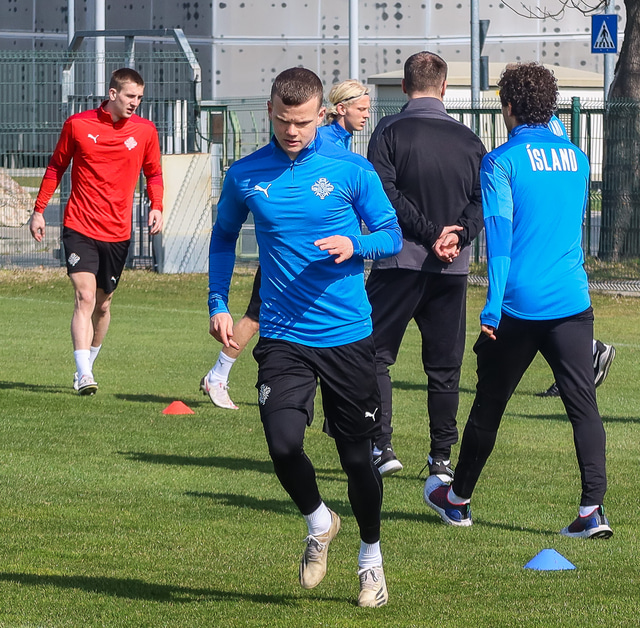 Íslenska U21 árs landsliðið æfði saman á æingasvæði liðsins við hótelið í Györ í dag. Liðið undirbýr sig fyrir lokaleikinn í riðlinum sem verður gegn Frakklandi á miðvikudag.