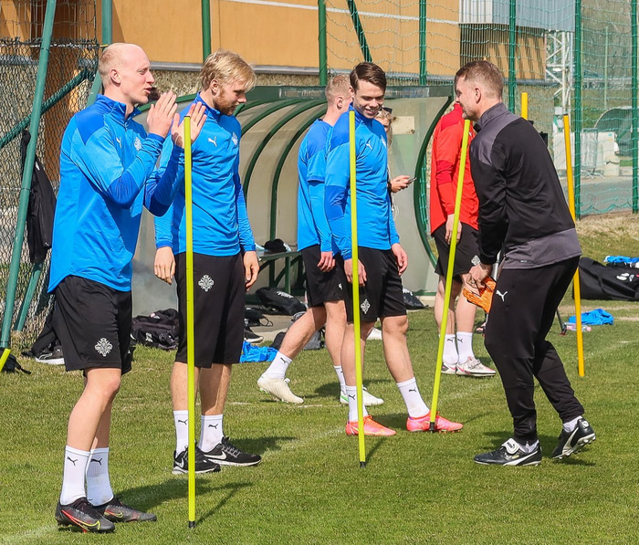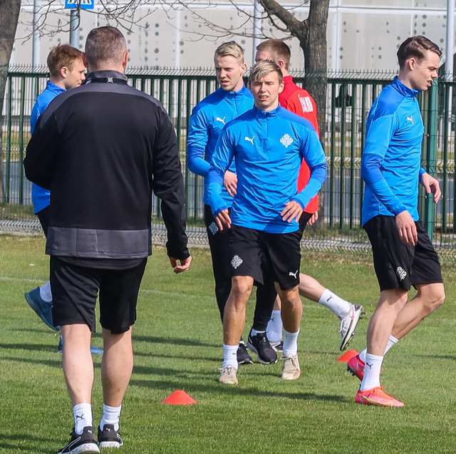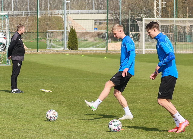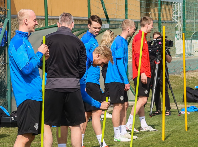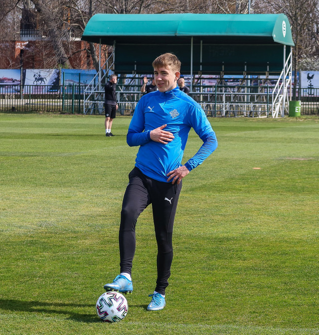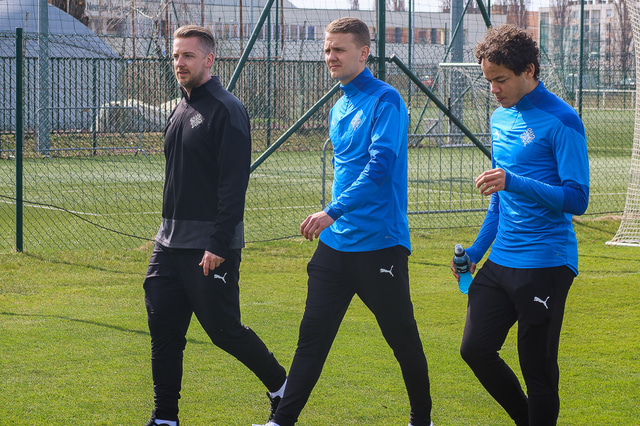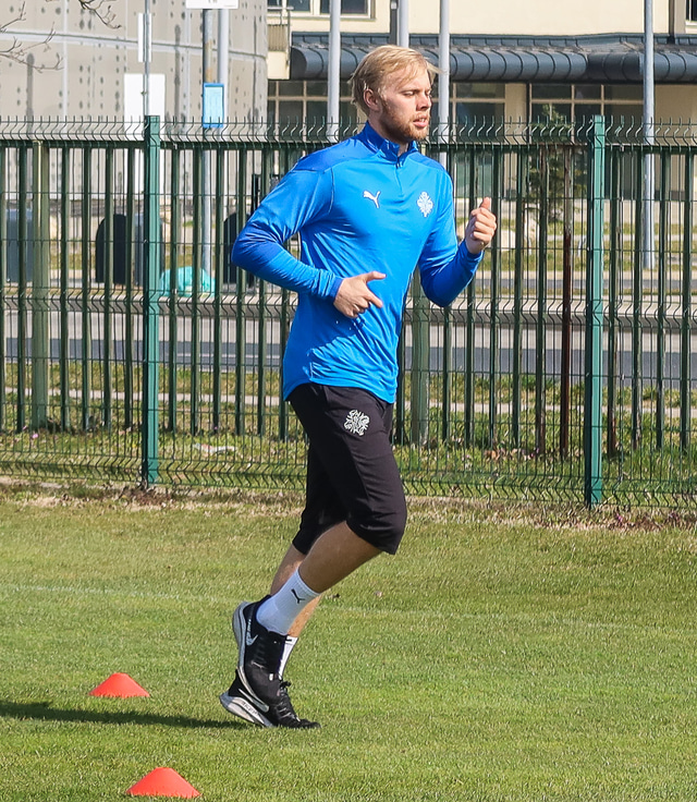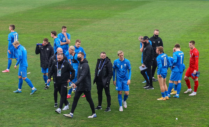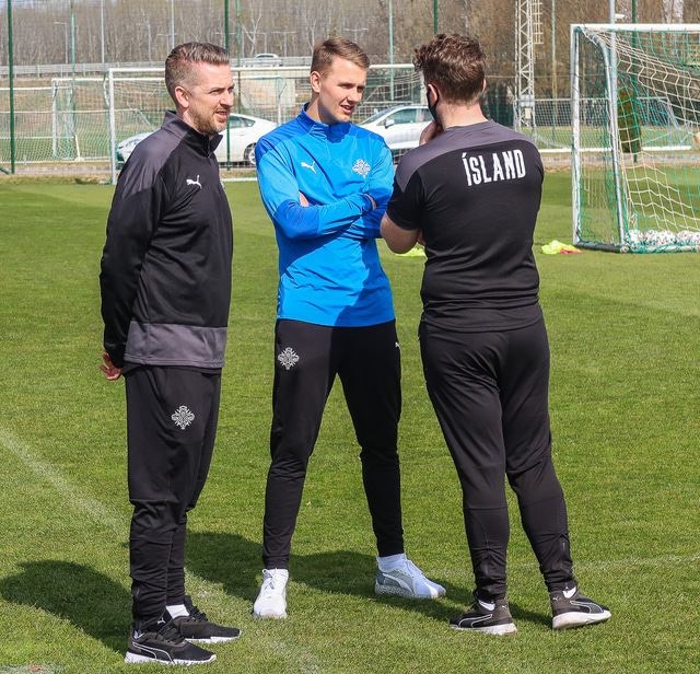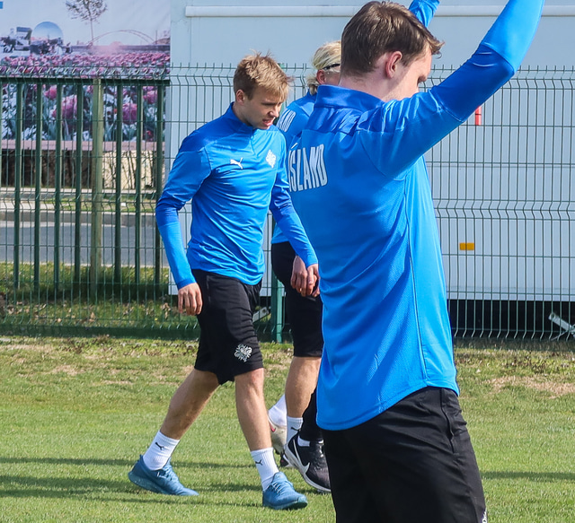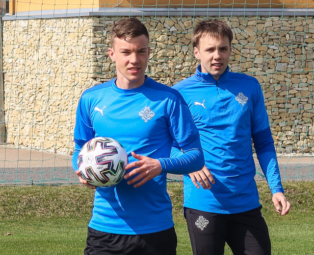 Æfingin var sú síðasta sem þeir Ísak Bergmann Jóhannesson, Jón Dagur Þorsteinsson, Sveinn Aron Guðjohnsen og Willum Þór Willumsson tóku þátt í því þeir héldu eftir æfinguna til móts við A-landsliðið sem mætir Liechtenstein á miðvikudag.