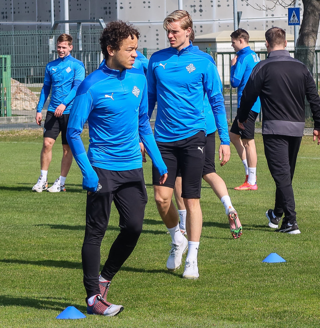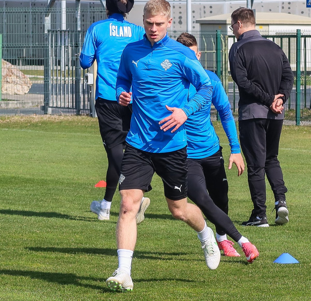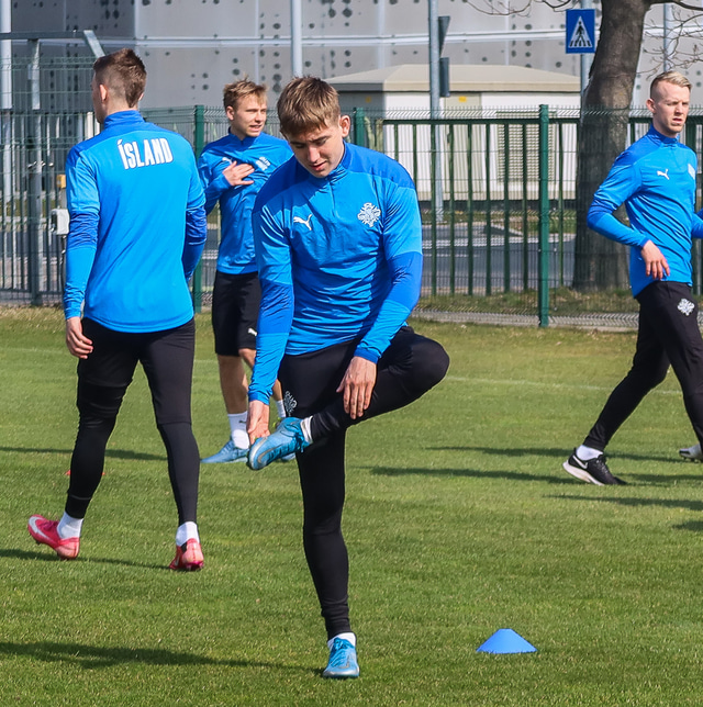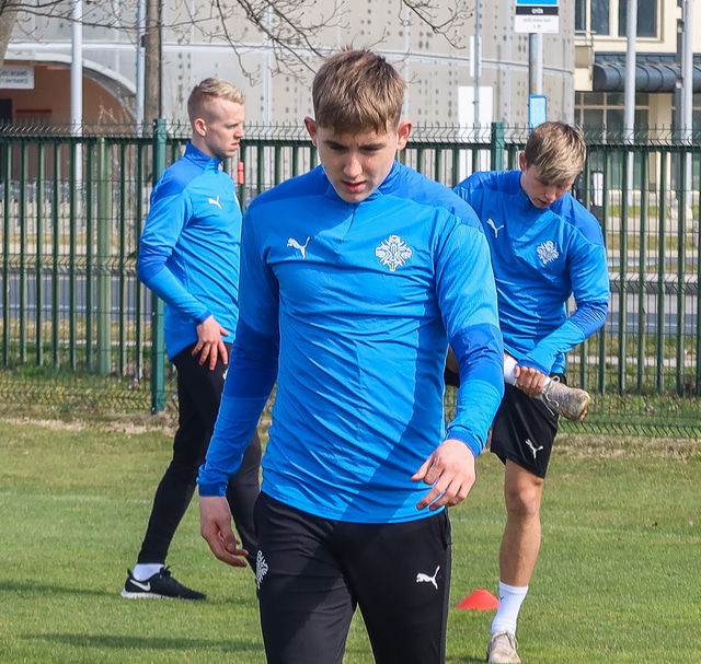 Ísak Óli Ólafsson var rólegur á æfingunni í dag, hann tognaði gegn Dönum í gær. Mikael Neville Anderson var þá einnig í rólegheitum á þeim tíma sem starfsmaður Fótbolta.net var viðstaddur.