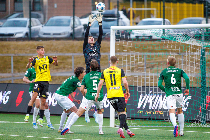 „Ég myndi segja að þetta sé fínt eftir fjóra leiki, auðvitað er svigrúm fyrir bætingar en það er nú oftar en ekki þannig. Við erum búnir að vera meira solid varnarlega og svigrúmið fyrir bætingar hefur verið sóknarmegin. Vonandi er það eitthvað sem mun hrökk í gang og hrökk að einhverju leyti í gang á móti Þór í síðasta leik, vonandi heldur það áfram," segir markvörðurinn.