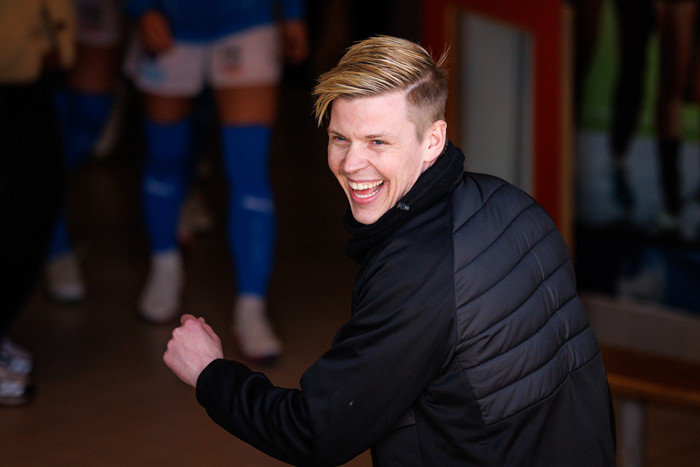 „Ég var ánægður með ofboðslega margt. Já ég er sammála þér, mér fannst við byrja gífurlega vel. Hún eiginlega slapp þarna í gegn áfyrstu þrátíu sekúndunum þannig við greinilega lærðum eitthvað af síðasta leik. Mér finnst við hafa stjórn á öllu sem við vorum að gera, þanga til við skorum þá fannst mér við missa aðeins smá tök,''
