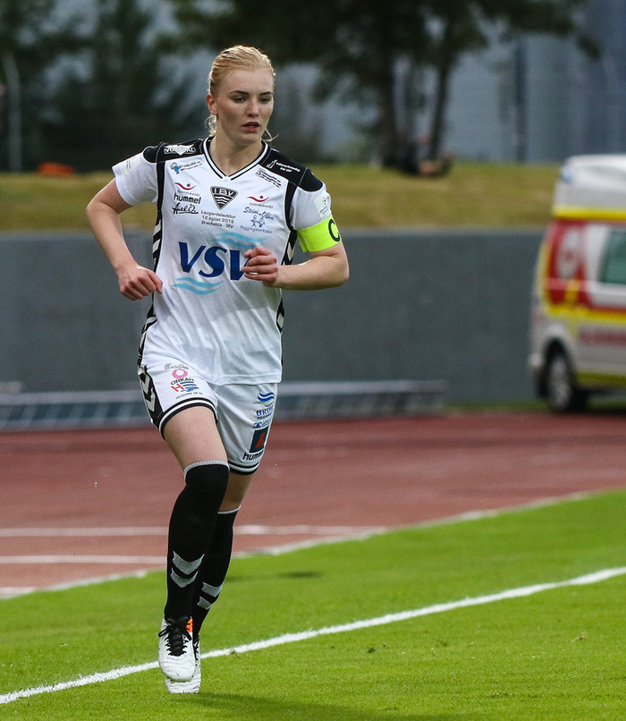 Mikil bleyta var á vellinum í dag. Spurð út í ummæli Ólafs, þjálfara Breiðabliks svaraði hún: „Við þekkjum aðstæður og æfðum hérna í gær. Það hafa allir spilað í bleytu. Ég veit ekki hvort við séum eitthvað betri en önnur lið í því."
