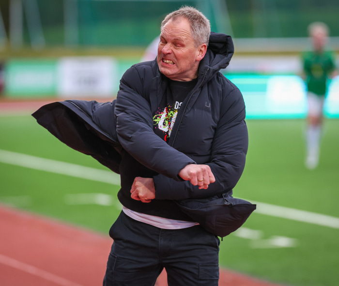 Það er spurning hvort þessi svipur hafi fengið að láta sjá sig hjá Óskari er Klæmint brenndi af dauðafæri.