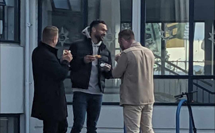 Enginn annar en Steven Caulker, fyrrum varnarmaður Tottenham Hotspur, er meðal áhorfenda á vellinum. Fótboltasérfræðingurinn Albert Brynjar Ingason sagði frá því í útsendingu Stöðvar 2 Sport á leikjum dagsins að Caulker væri í samningsviðræðum við Stjörnuna.