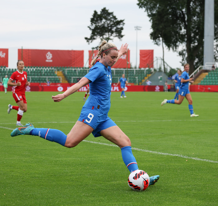 Berglind skoraði jöfnunarmark Íslands snemma í seinni hálfleik eftir undirbúning frá Gunnhildi Yrsu Jónsdóttur.