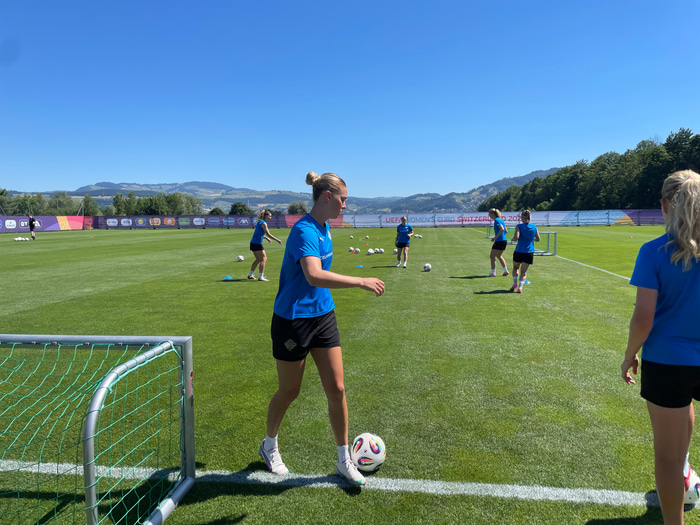 Diljá Ýr Zomers er í landsliðshópnum sem tekur þátt á Evrópumótinu sem hefst í vikunni. Það var óvíst lengi vel hvort Diljá gæti verið með á mótinu þar sem meiðsli voru að stríða henni.