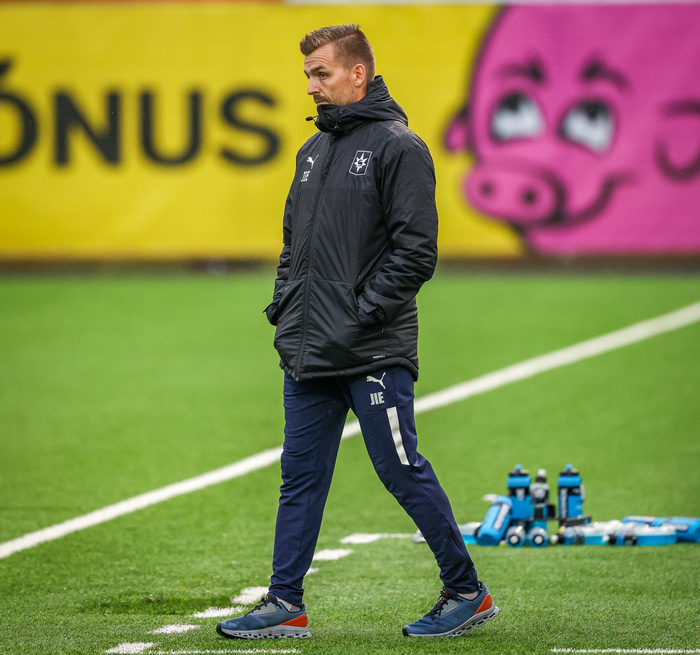 Næsti leikur Stjörnunnar er í forkeppni Sambandsdeildarinnar og segist Jökull meðvitaður um að svona mark fengi ekki að standa í Evrópuleik. Það er því spurning hvenær hann fer með sitt lið í að æfa þessa uppsetningu á föstu leikatriði.