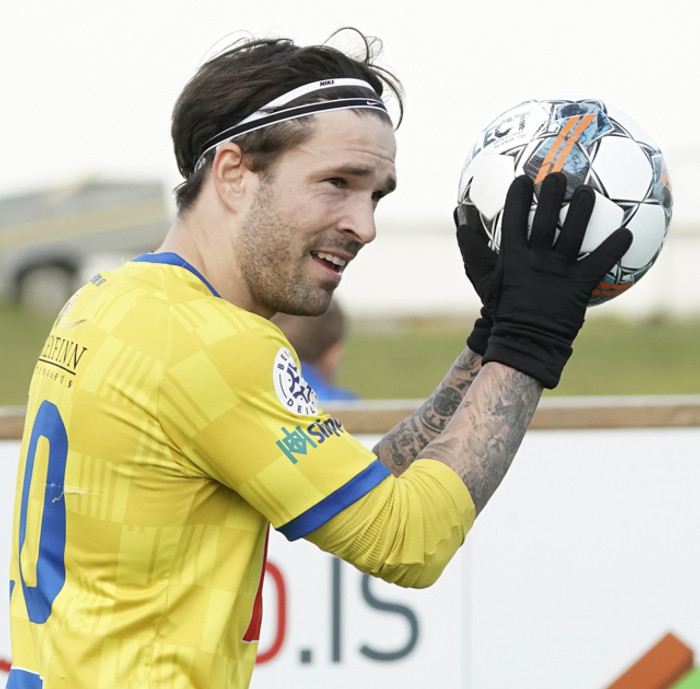 Hallgrímur Mar var tveggja marka maður í dag. Hann segir hópinn vera spenntan fyrir að komast í frí eftir langt tímabil.
