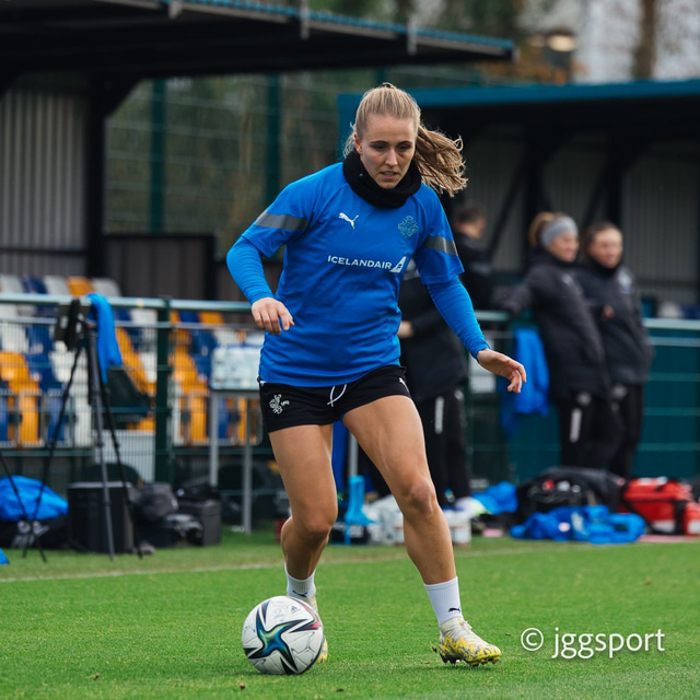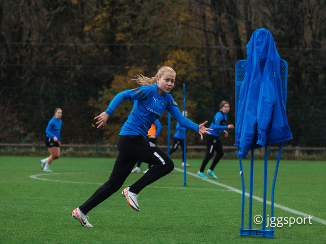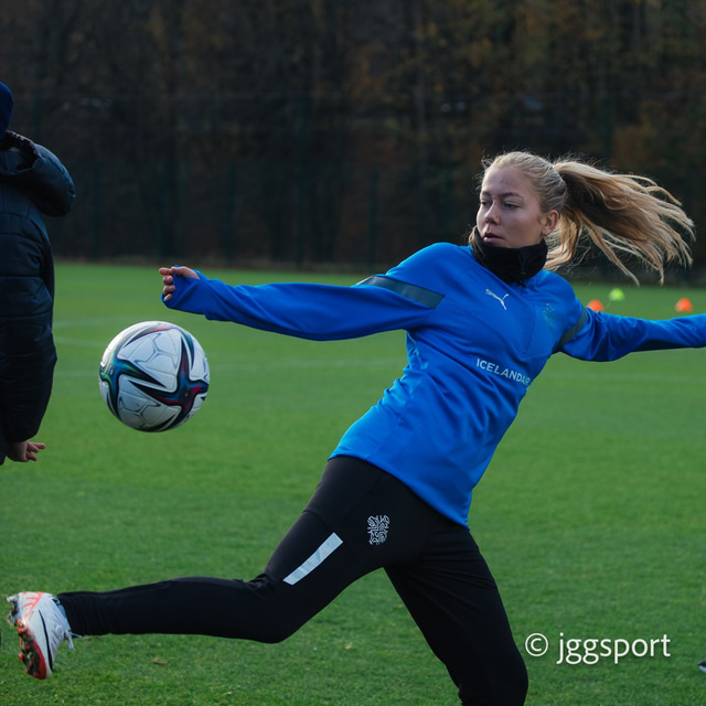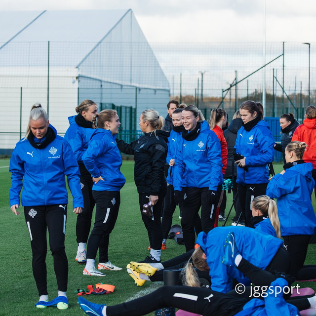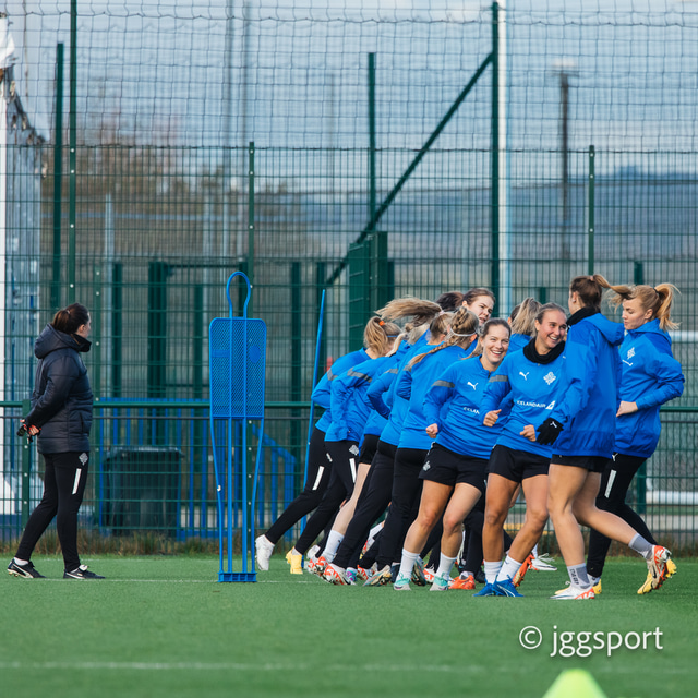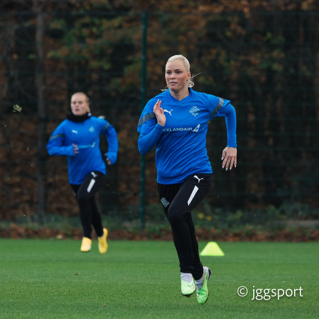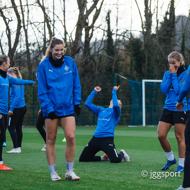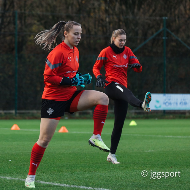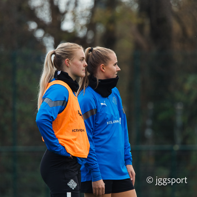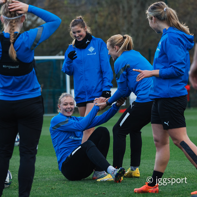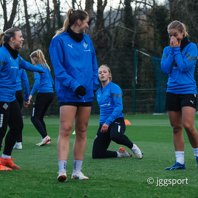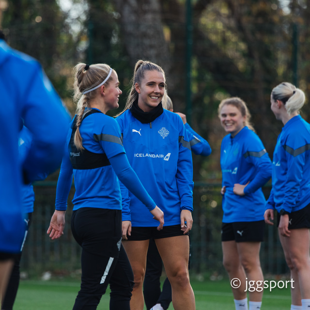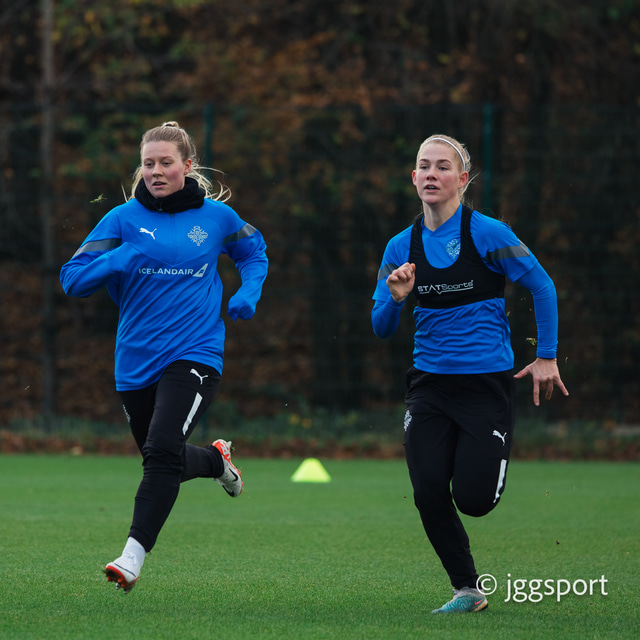 Ísland æfði á æfingavelli í Cardiff í Wales í gær en framundan er leikur við heimakonur í Þjóðadeildinni á föstudagskvöldið. Jónína Guðbjörg Guðbjartsdóttir tók þessar myndir á æfingunni.