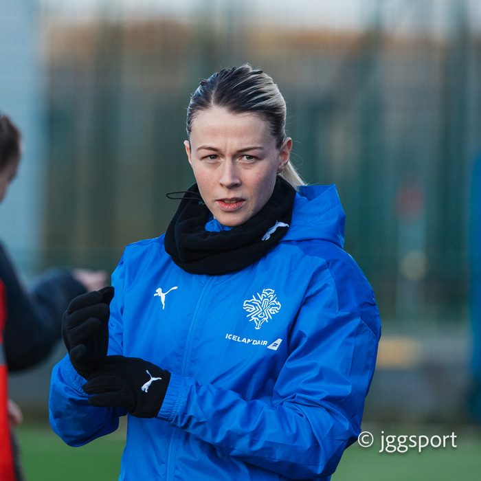 „Ég er búin að æfa smá með strákunum fyrir norðan því þeir byrjuðu að æfa á undan okkur og svo hef ég verið mjög mikið í ræktinni og hjólað og haldið mér sjálf. Það er líka gott því ég held ég græði líka persónulega á að ná tempóinu niður til að vera í toppstandi þegar landsleikkirnir eru."