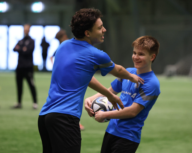 Æfingarnar fóru fram í Miðgarði í Garðabæ en þar æfðu ungu mennirnir undir stjórn þjálfara KSÍ auk þess sem fjórar goðsagnir hjálpuðu til,  Hermann Hreiðarsson, Brynjar Björn Gunnarsson og Ívar Ingimarsson sem allir spiluðu í ensku úrvalsdeildinni auk Atla Sveins Þórarinssonar.