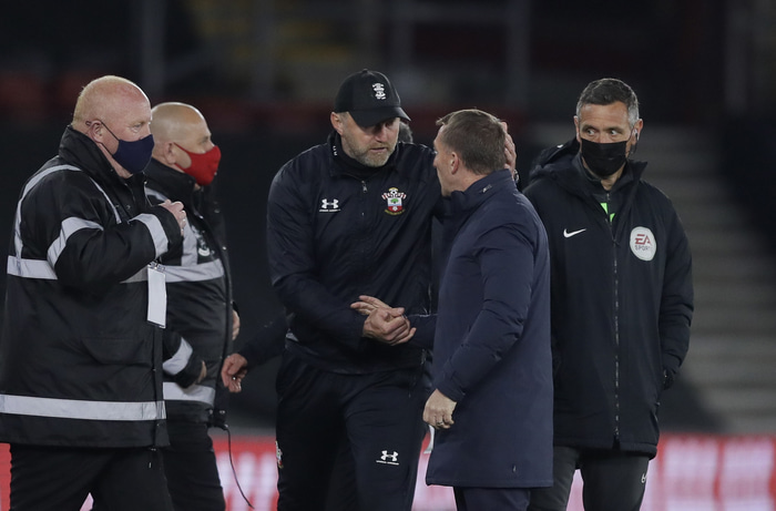„Leikmenn eiga allt hrós skilið. Við getum rætt um þetta rauða spjald og hversu vel við gerðum að gera í kjölfarið á því. Þeir fengu 80 mínútur til að skora gegn okkur. Við vorum frábærir fyrir utan markið sem þeir skoruðu," sagði Ralph Hasenhuttl, stjóri Southampton, eftir jafntefli gegn Leicester í kvöld.