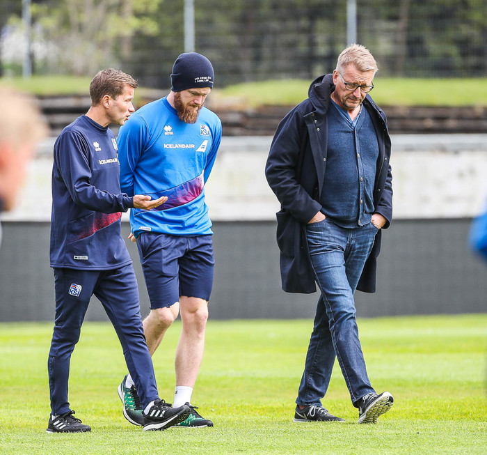 Aron ræddi við íslenska fjölmiðla um stöðu mála á Laugardalsvelli í dag og má sjá viðtalið í heild í sjónvarpinu hér að ofan.