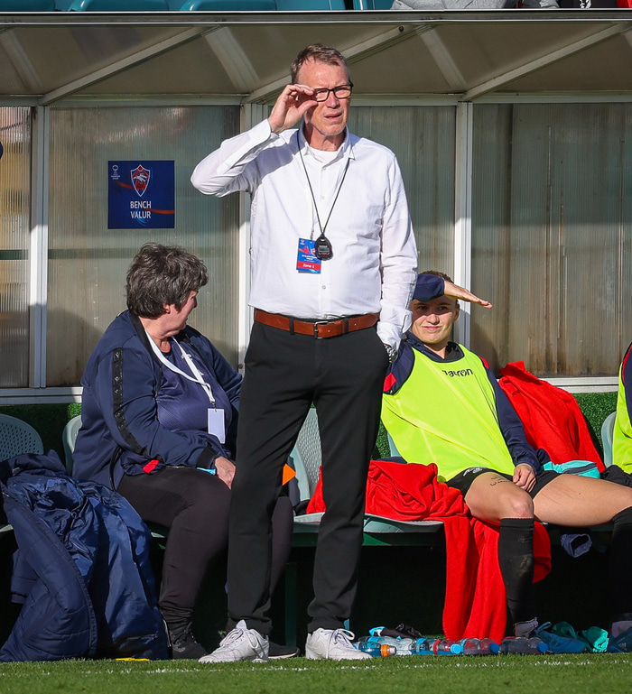 „Það eykur á það að við þurfum að finna farveg fyrir unga leikmenn annars staðar þegar þær eru ekki alveg komnar í það að fá nógu mikið af mínútum hjá okkur. Í staðinn fyrir að þær gætu verið í varaliði og á bekk hjá okkur, þá þurfum við að fá okkur stærri hóp og fleiri leikmenn til að geta höndlað mótið en samt komið ungu leikmönnunum fyrir í verkefni annars staðar. Þetta flækir öll mál og þetta púsluspil með félagaskipti ungra leikmanna - ég er alveg sammála Pétri - það gerir okkur erfitt fyrir. Og það á við um öll félög, ekki bara stóru félögin."
