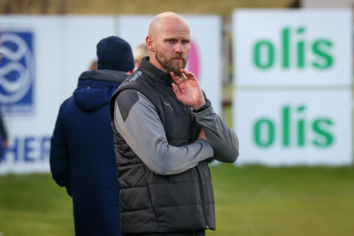 Þjálfarinn var spurður út í dómgæsluna, hann nefndi hana fyrr í viðtalinu og var sýnilega ósáttur með hana á hliðarlínunni. „Alveg klárt að ég var ósáttur, það mátti hrinda, spila handboltavörn út um alla vörn og svo 'soft' víti. Þegar maður ræðir þetta við dómarana í hálfleik þá fær maður þau svör að þetta sé fótbolti. Það er í aðra áttina. Ég nenni ekki að kvarta yfir dómgæslunni í þessari deild."