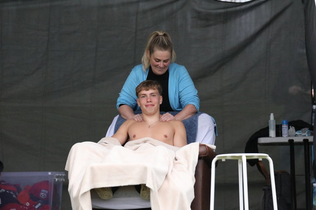 Afturelding hefur boðið upp á stórbrotna umgjörð í kringum leiki sína og gátu áhorfendur skellt sér í nudd á meðan horft er á leikinn. Meðal þeirra sem nýttu sér þá þjónustu var Borghildur Sigurðardóttir varaformaður KSÍ.