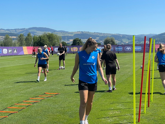 Stelpurnar komu til Sviss síðasta laugardag og hafa verið að undirbúa sig fyrir fyrsta leik á Evrópumótinu síðustu daga.
