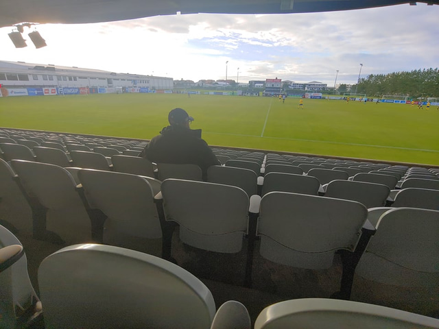 Elvar Geir Magnússon er á Meistaravöllum fyrir hönd Fótbolta.net og hann tók meðfylgjandi myndir. Ansi tómlegt er um að litast en einn einstaklingur situr í stúkunni. Það er Halldór Breiðfjörð, eftirlitismaður KSÍ.