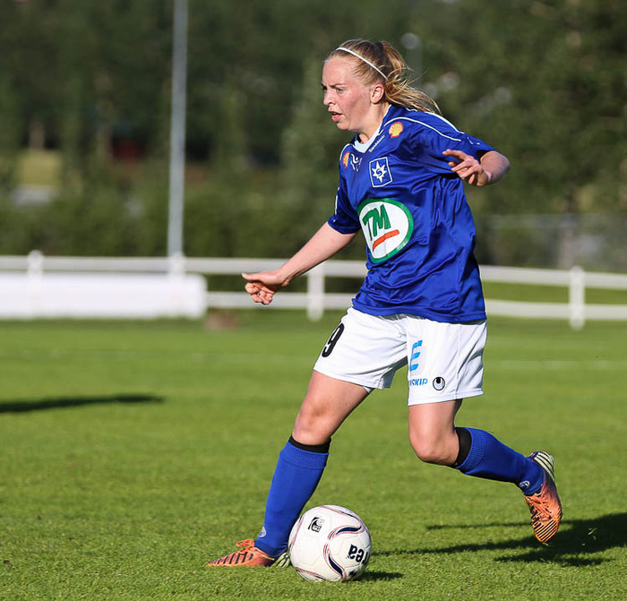 Kristrún leikur í stöðu vinstri bakvarðar og var því svolítið stressuð þegar hún komst í dauðafæri undir lok leiks.